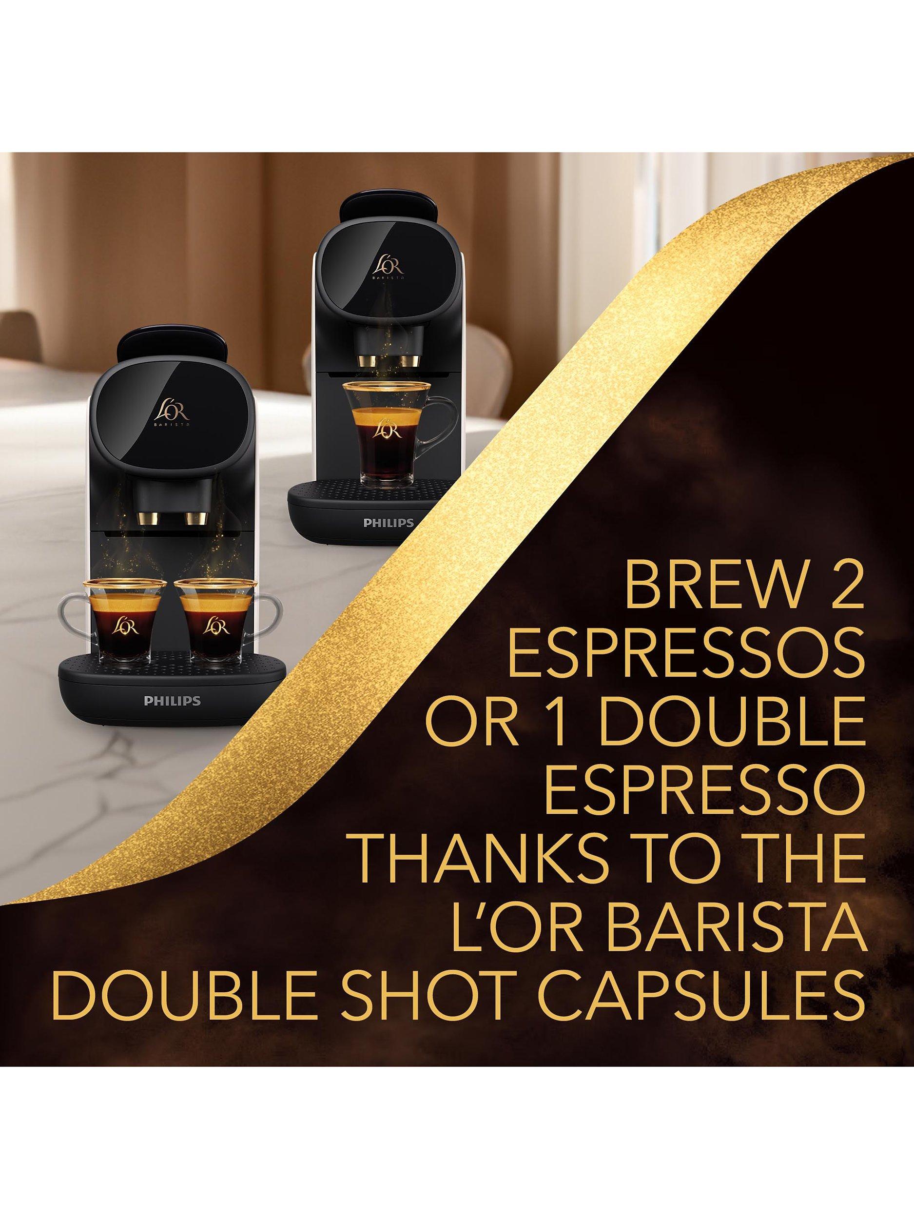 Discover the new L'OR Barista coffee machine with personalisation for your perfect drink size. Brew two single espressos at once or a double espresso in one cup with the exclusive L'OR Barista double shot system.