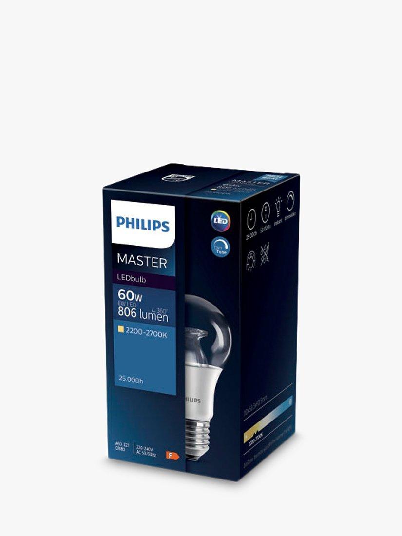 In a unique design radiates warm light in all directions, this 60W LED bulb from Philips is fully dimmable, has a lifespan of up to 25,000 hours and has a standard E27 fitting.
