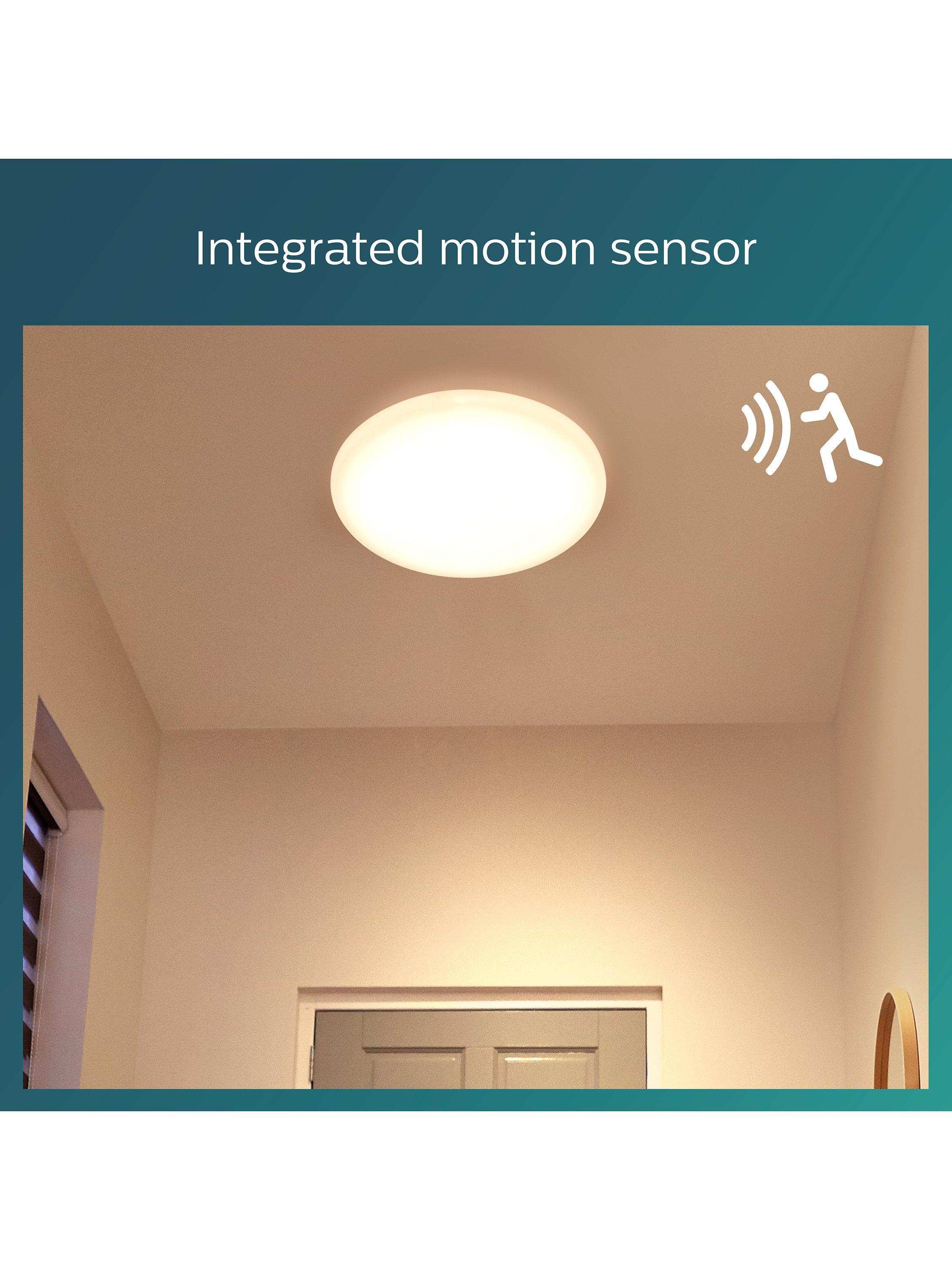 Adaptable, functional and energy-saving, thanks to an integrated LED, this fixture can be mounted to the ceiling or wall. It's equipped with motion sensor technology with a wide detection range, so you'll have instant lighting whenever you enter or leave the room. It offers shades of warm white light.