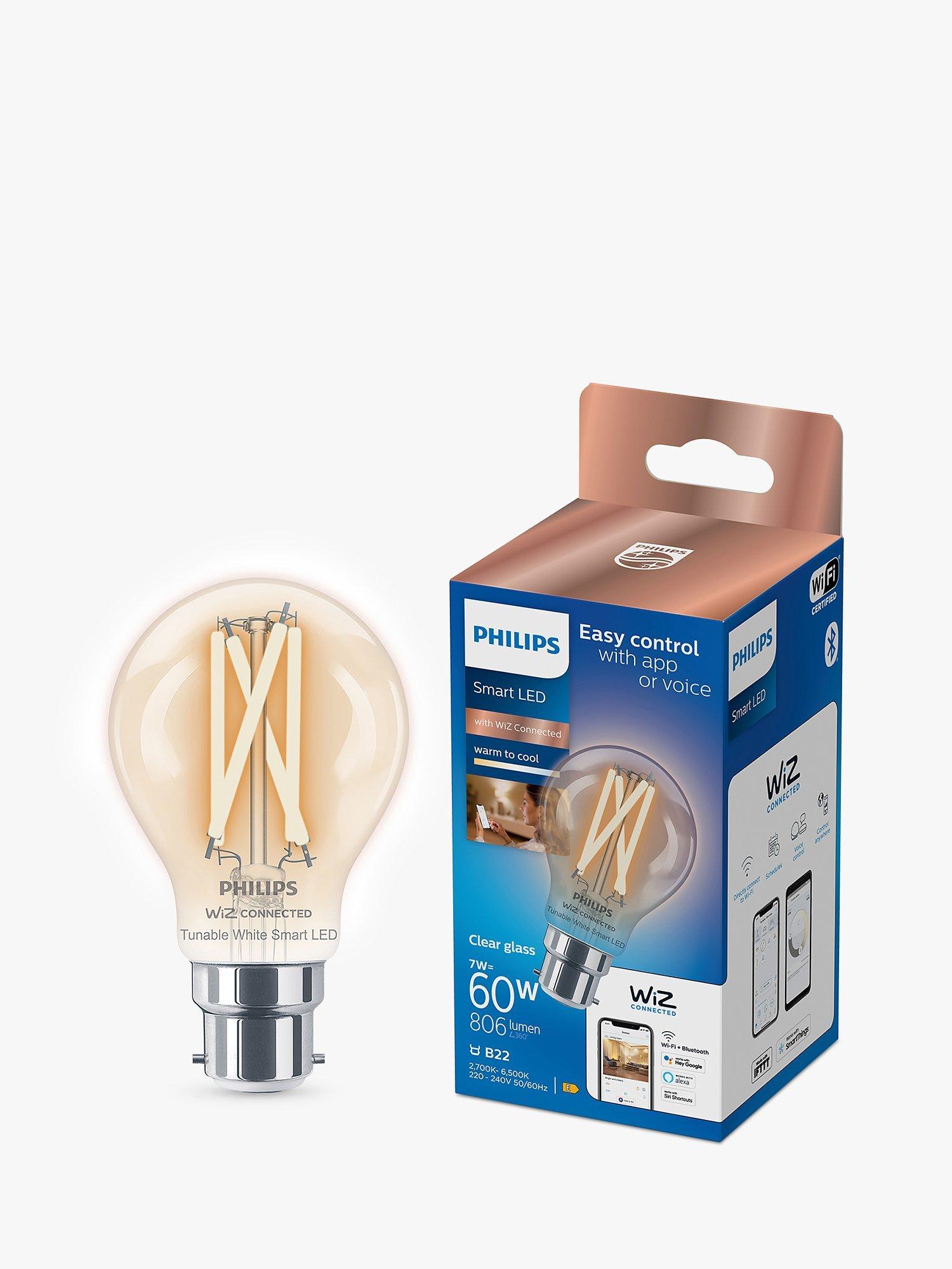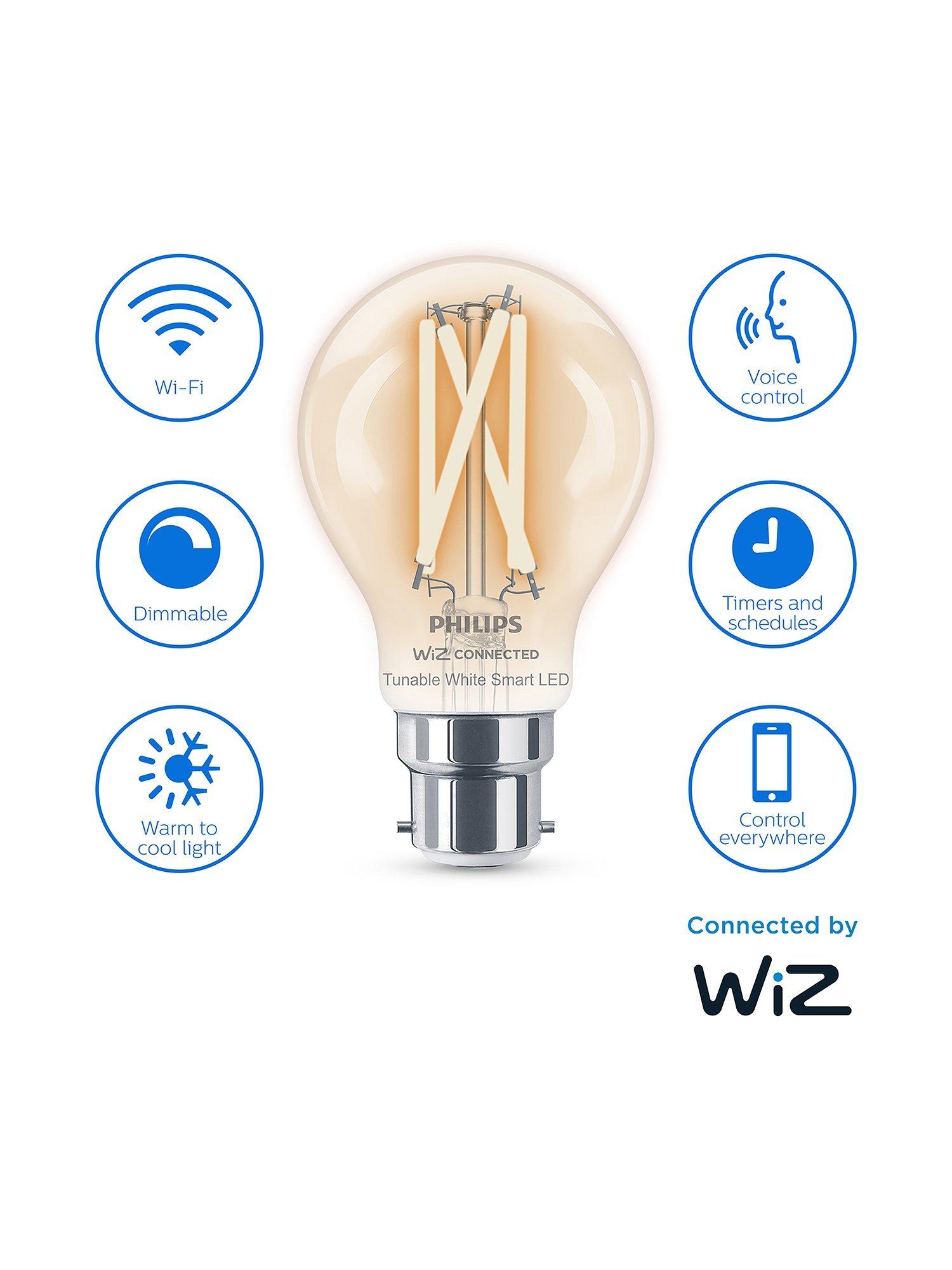 This Smart LED light bulb from Philips is equipped with WiZ Connected technology. The result? Smart, tunable white light which you can control from anywhere, when using the compatible app on your smartphone or with simple voice commands. It's smart lighting for smart living.