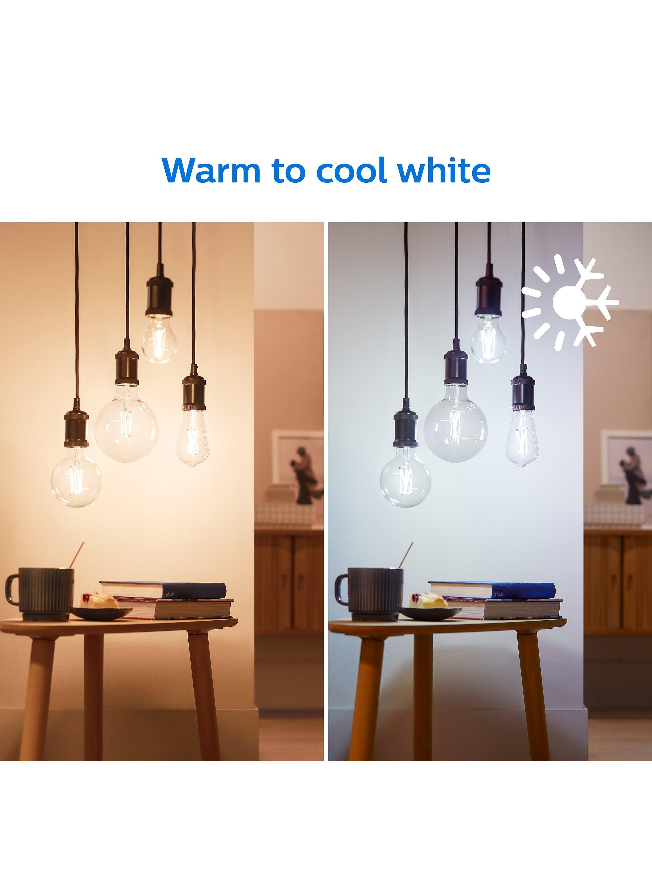 - Focused, cool white light is great at the start of the day, while warm light will help you to unwind and relax towards the end of the day