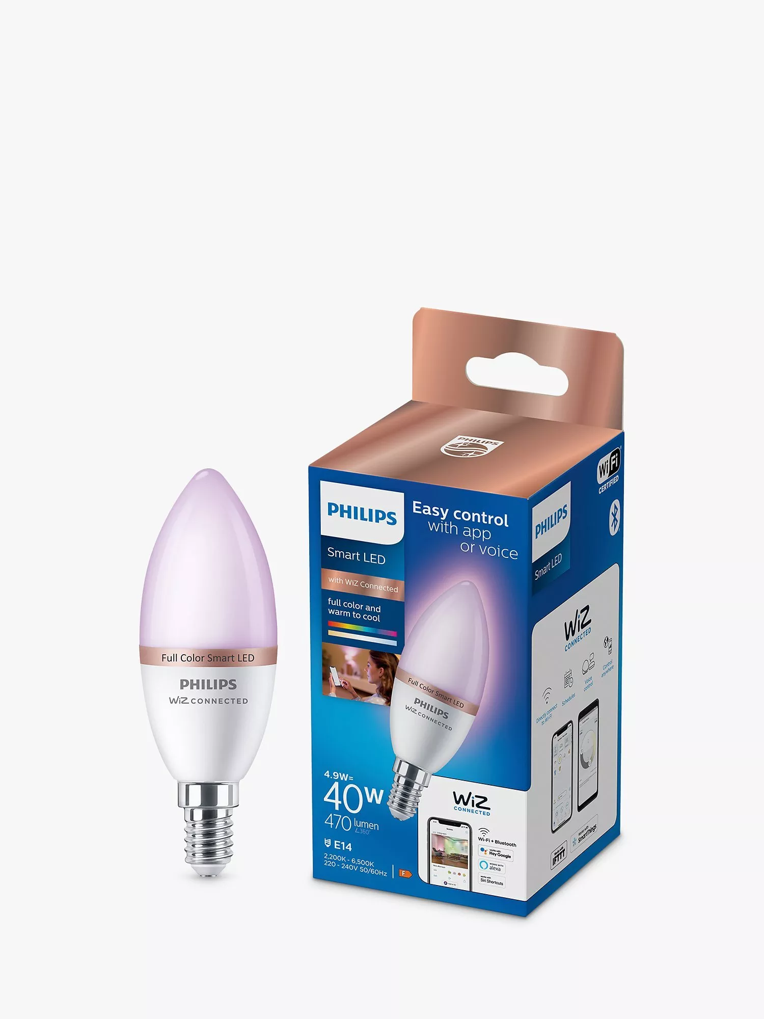 Enjoy more convenience in everyday life with this Philips E14 Smart LED light bulb connected by WiZ. These bulbs give 16 million colours that dim to your desired brightness level via app or voice.