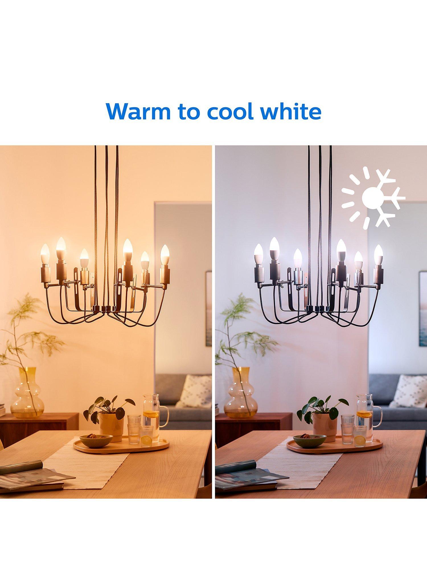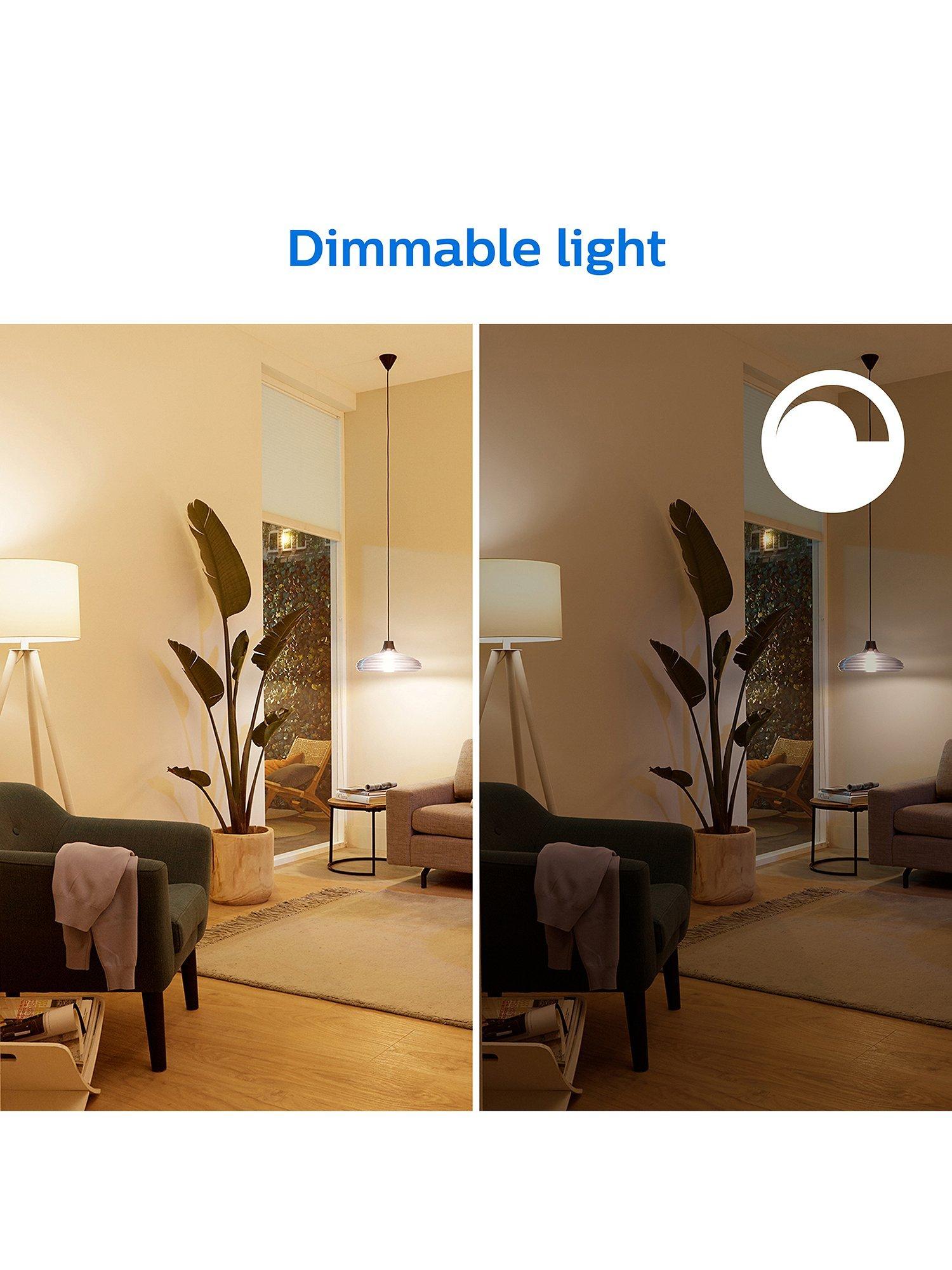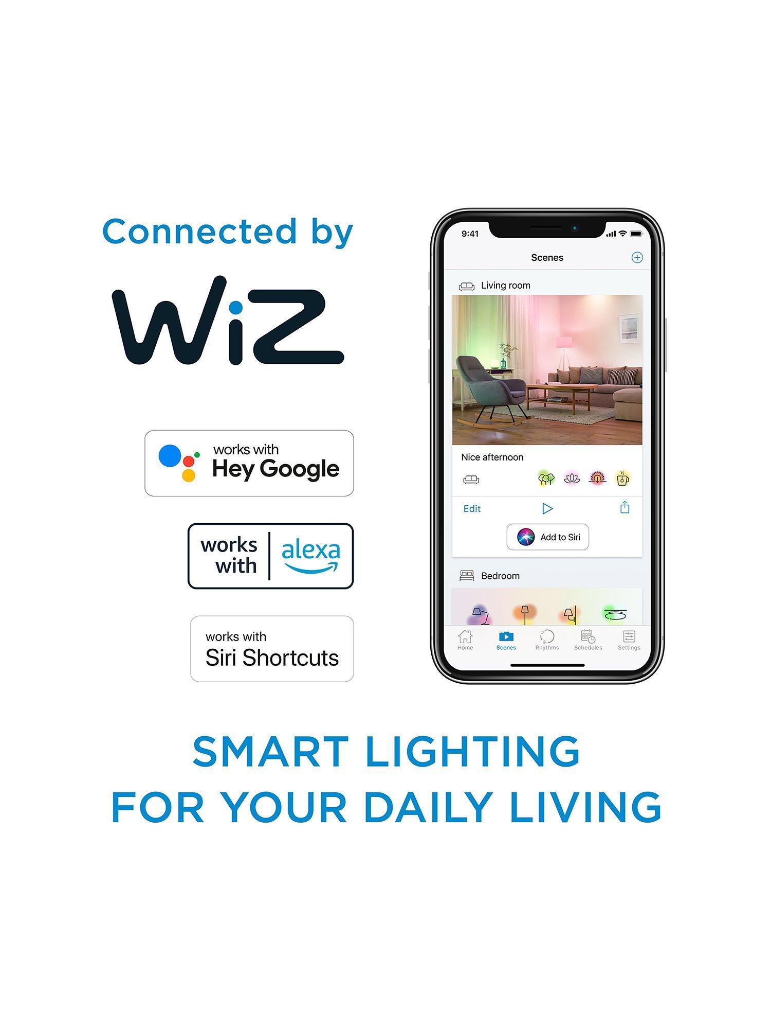 Enjoy more convenience in everyday life with this Philips E14 Smart LED light bulb connected by WiZ. These bulbs give 16 million colours that dim to your desired brightness level via app or voice. Pack of two.