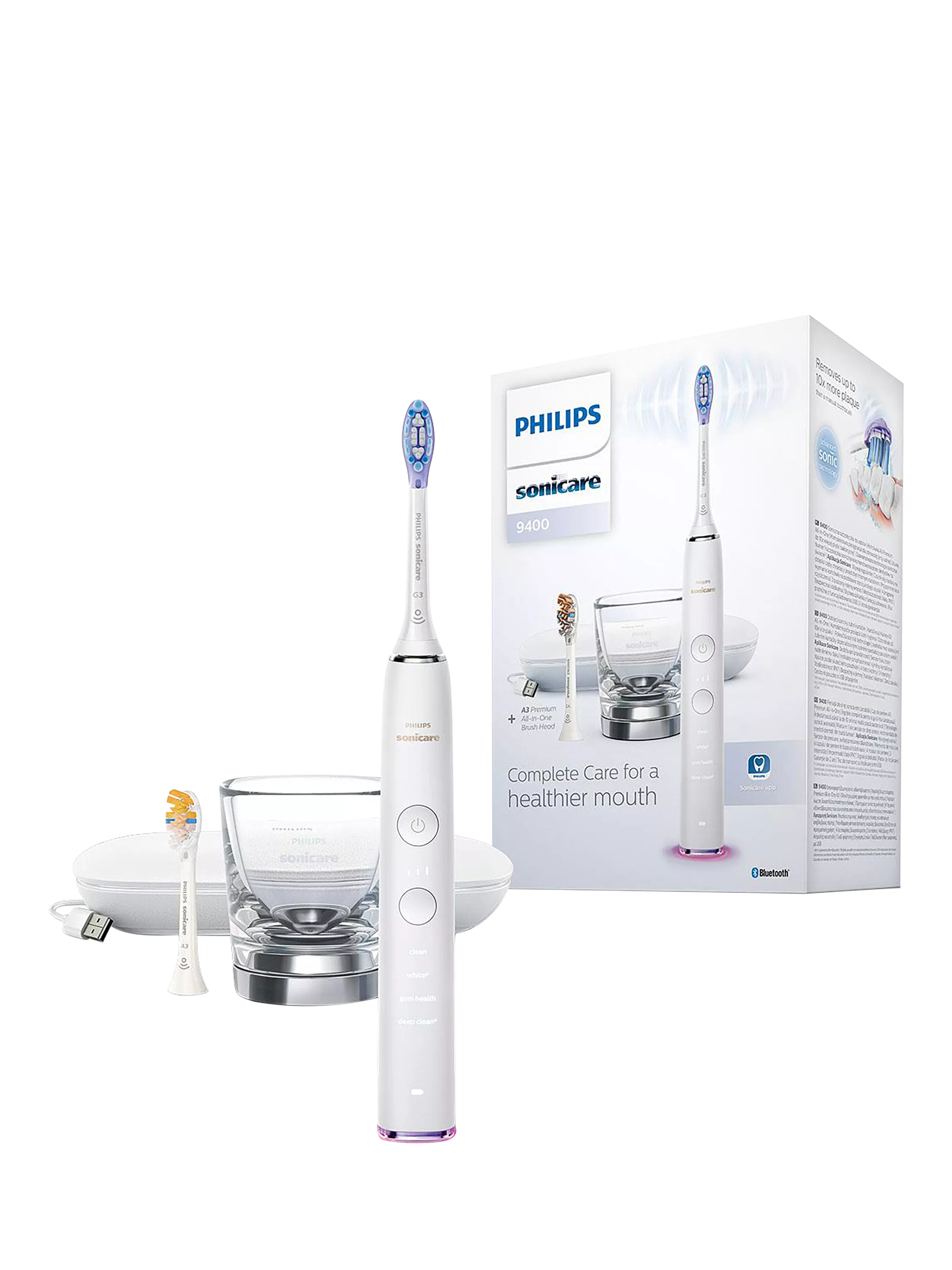 The DiamondClean 9400 comes with Clean, White+, Gum Health and Deep Clean+ to take care of your brushing needs.
