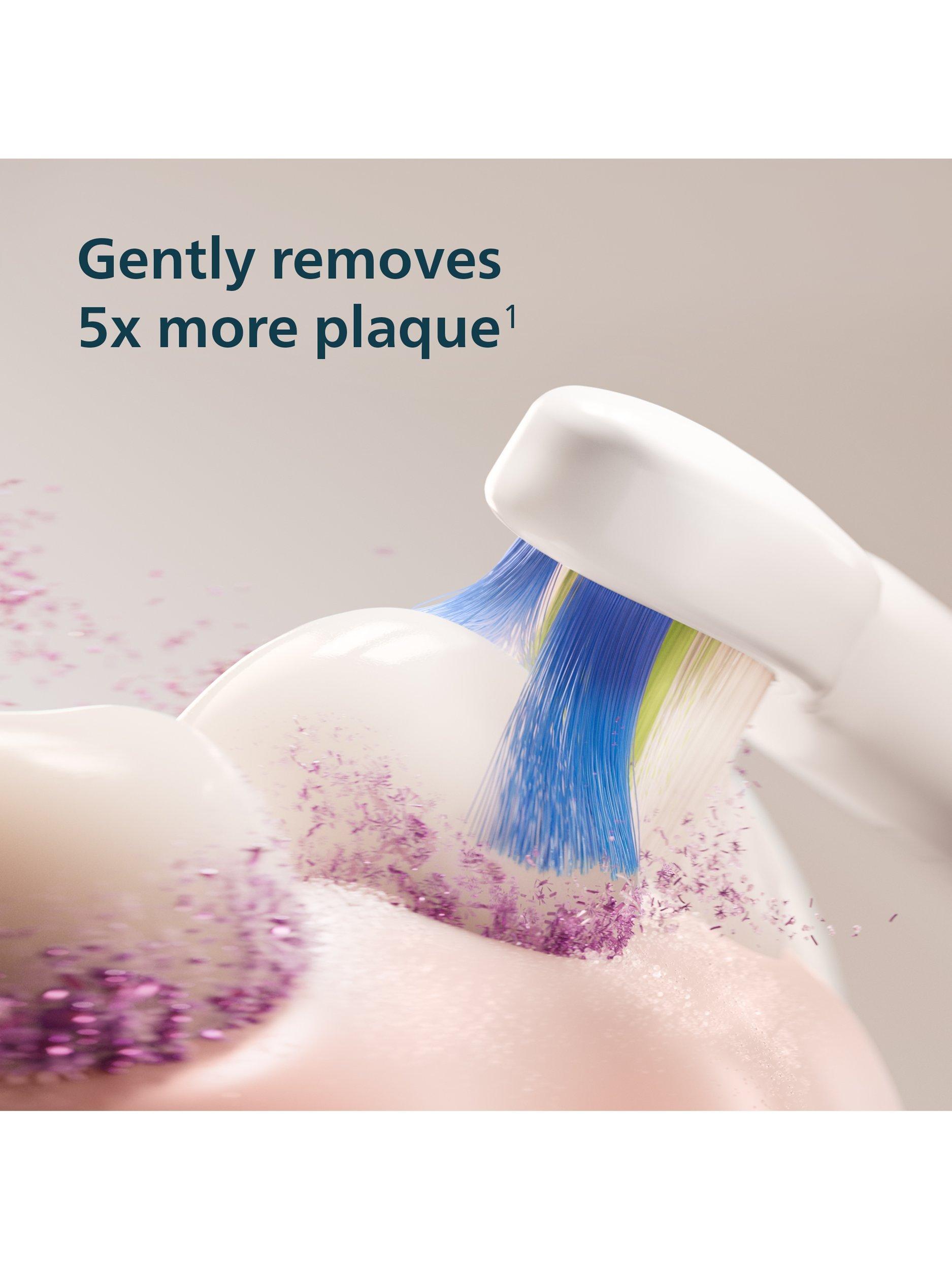 Upgrade your oral care routine with the Philips Sonicare 4100 sonic electric toothbrush, designed for a superior clean and a brighter smile. Paired with the W Optimal White brush head, it removes up to 5x more plaque than a manual toothbrush¹, thanks to densely packed bristles that target plaque and deliver a refreshing clean.