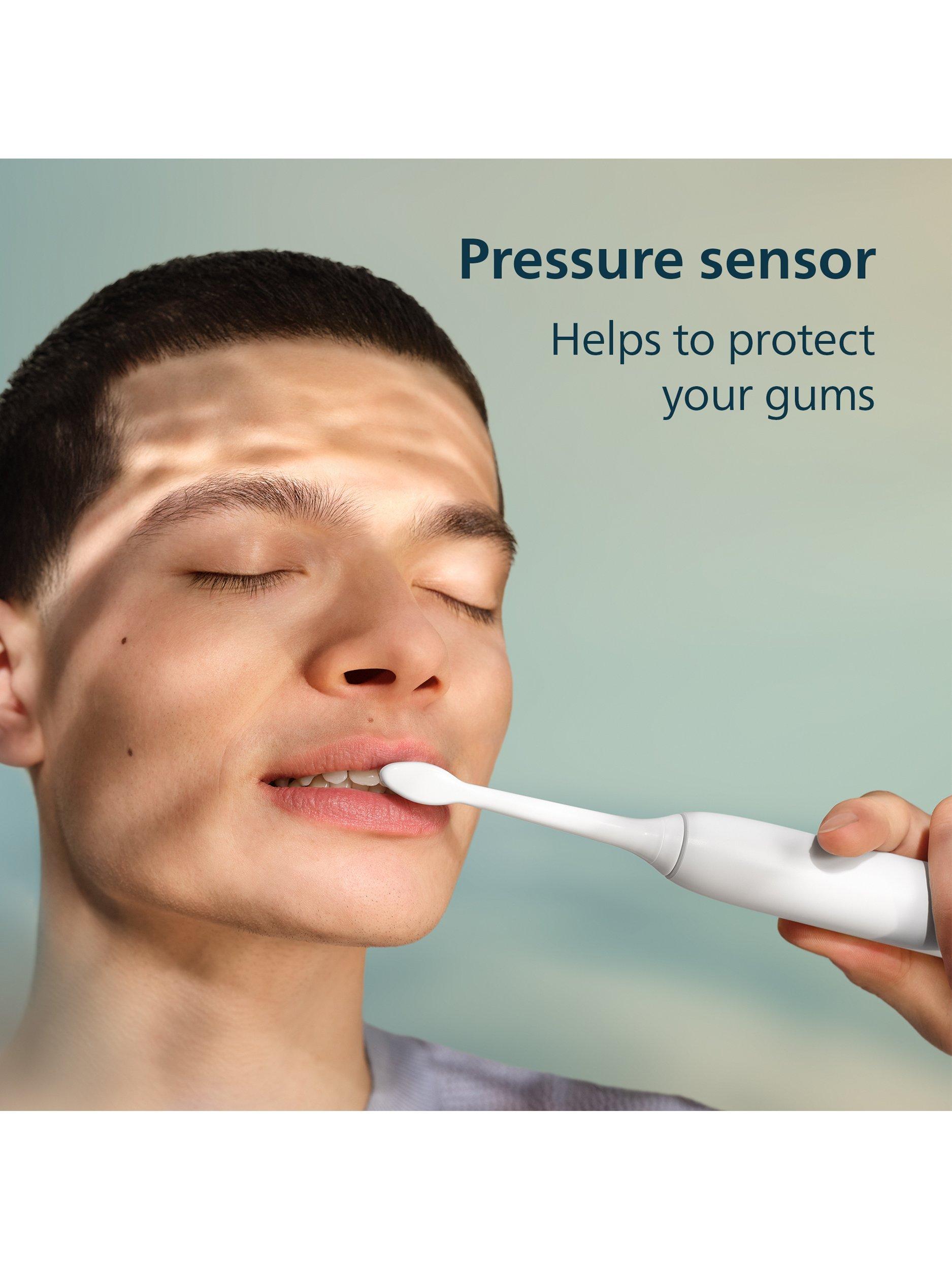 A smart pressure sensor detects excessive brushing force and alerts you with gentle vibrations, helping you ease off and maintain gum health.