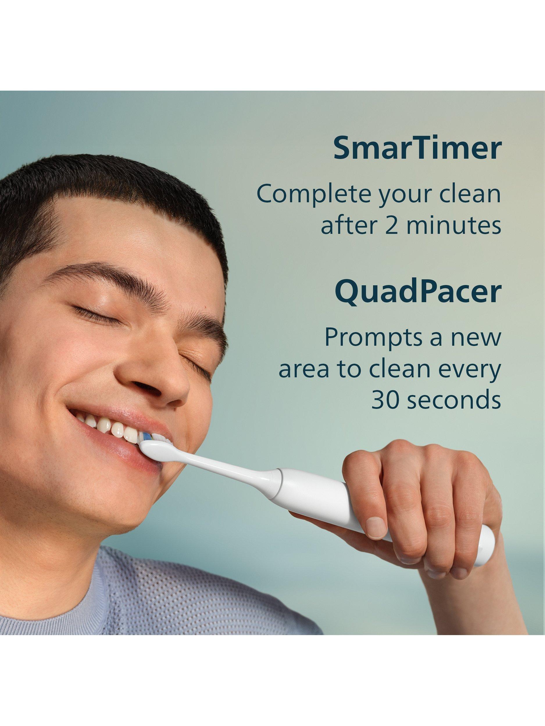 EasyStart: Gradually increases power over the first 14 uses for a smooth transition. QuadPacer & SmarTimer: Guides you to the dentist-recommended 2-minute brushing time.