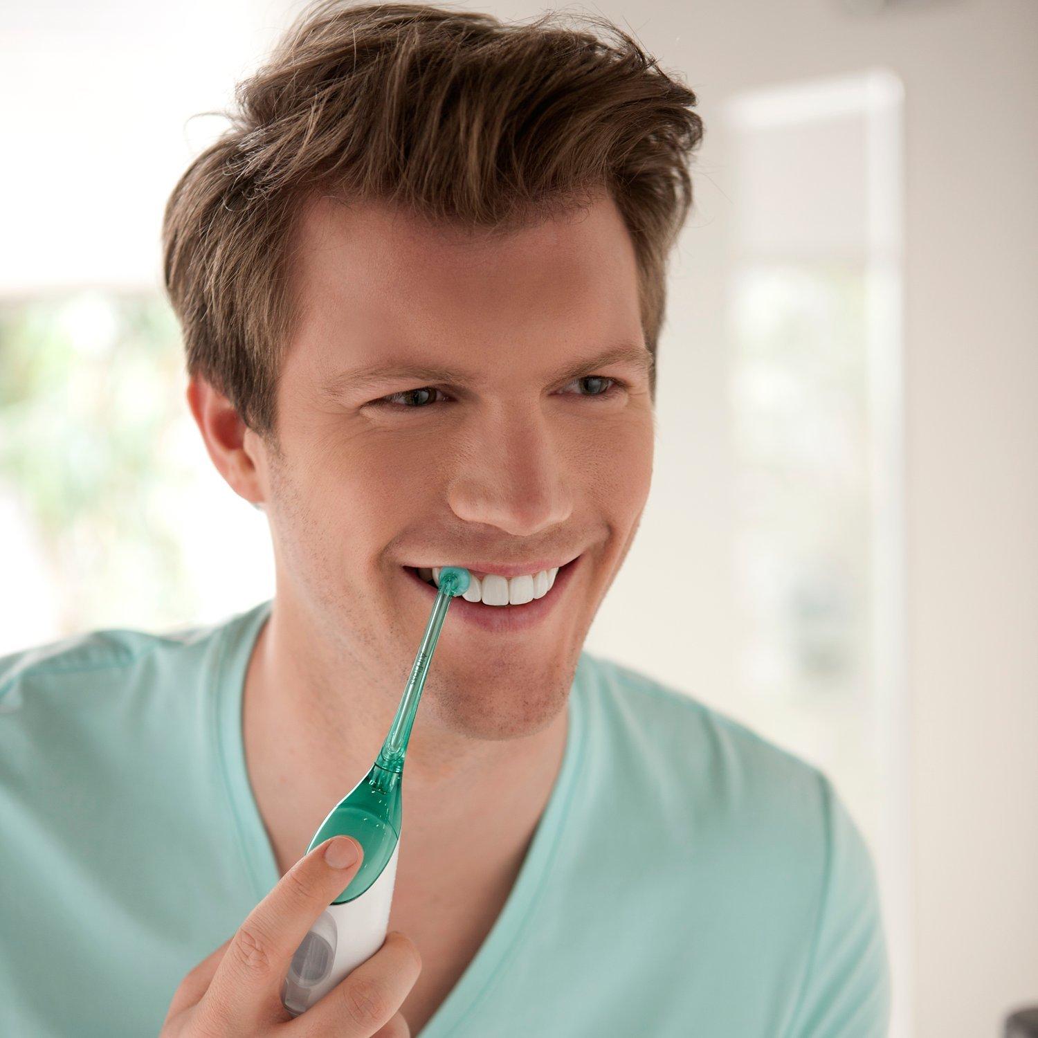 For those who don’t floss consistently, the Philips Sonicare AirFloss is an easy way to start cleaning between teeth. AirFloss can be used with mouthwash or water and features unique air and micro-droplet technology to help remove plaque in hard-to-reach areas.