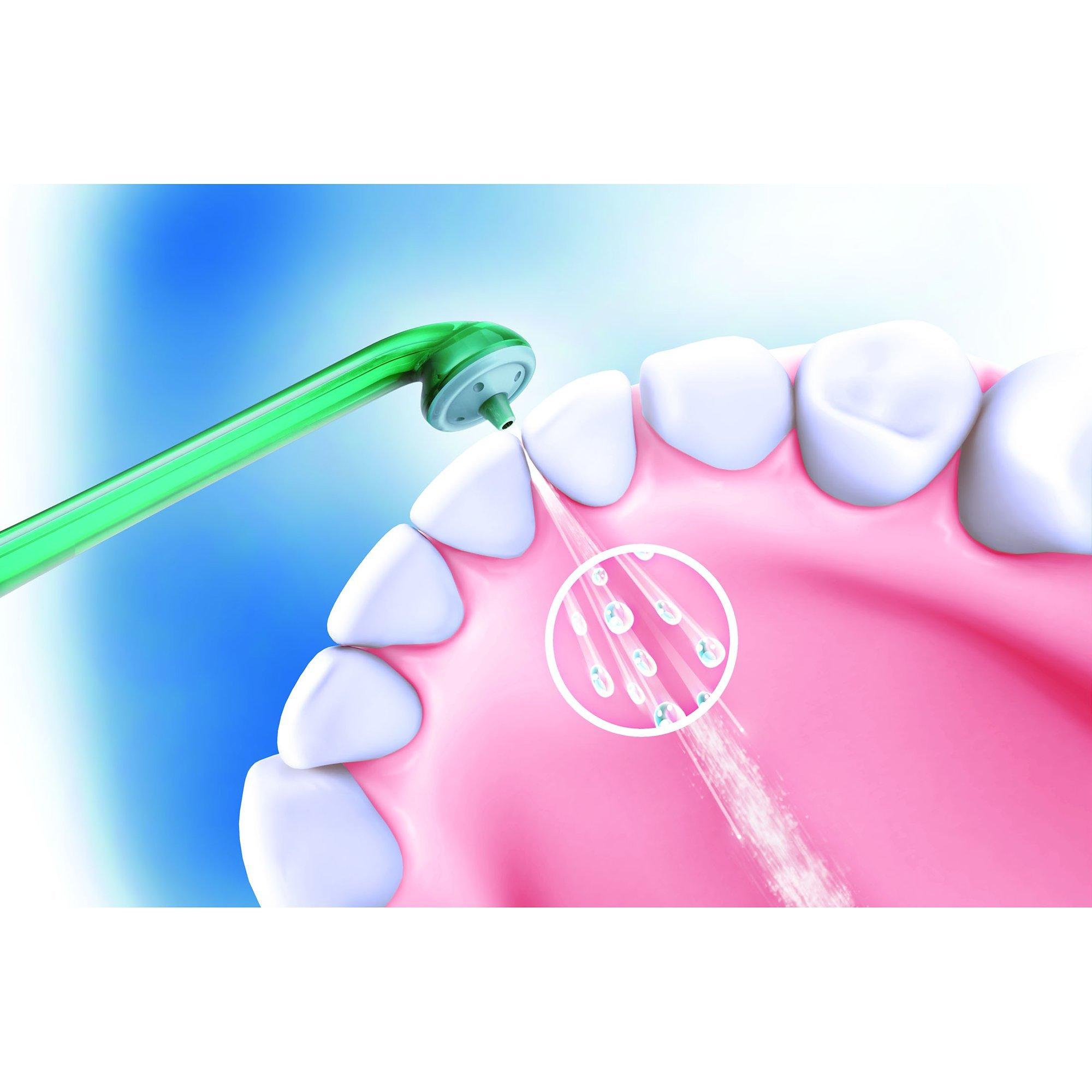 - Repeat Place the tip of the nozzle between the next set of teeth and repeat, all the way to the back teeth
