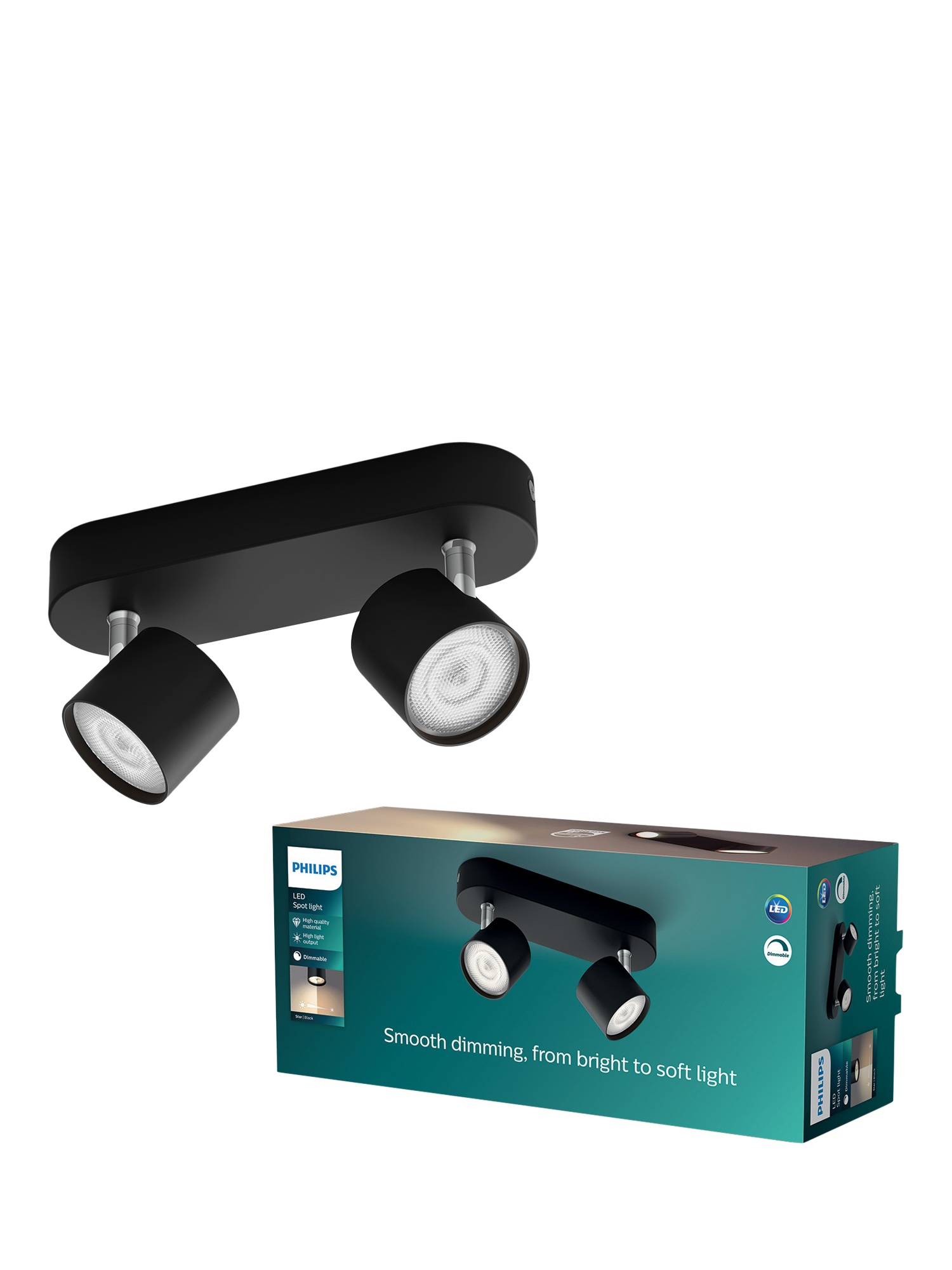 This Philips myLiving Star LED double spotlight has a timeless elegance due to the chrome arm and a housing with a dark powder coating. With the Philips dimmable spot, you can easily dim to the right light level. From functionally bright for everyday tasks, to a softer light for relaxation. This light can be ceiling or wall-mounted.