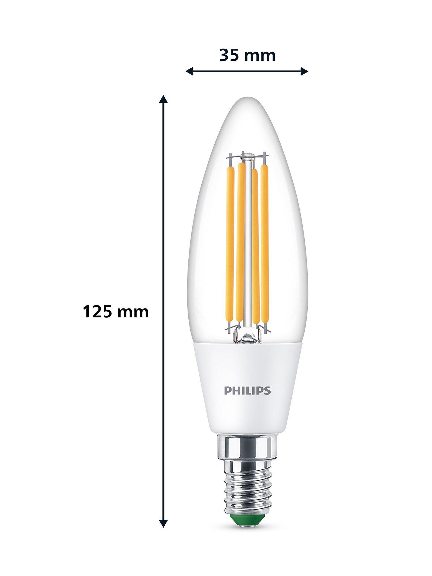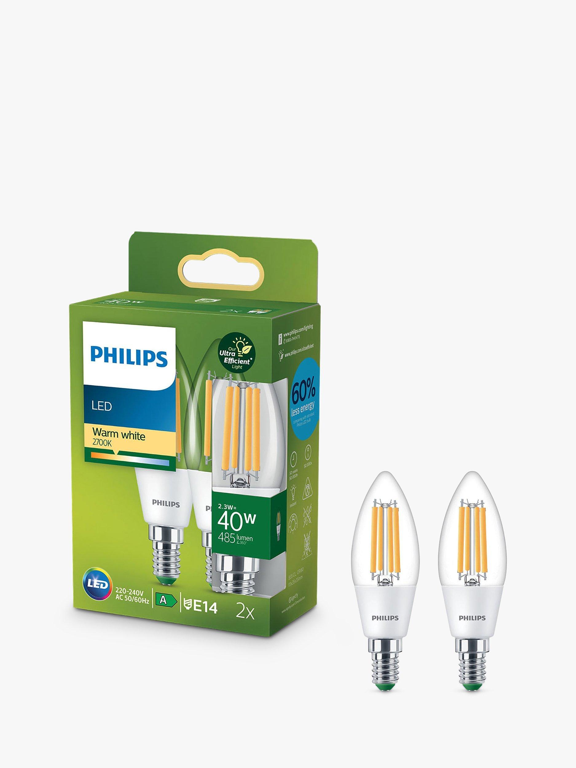 Part of Philip's Ultra Efficient range of LED bulbs, this elegant bulb is a great replacement for your old incandescent bulbs. It uses 60% less energy when compared with a standard Philips LED bulb and provides a beautiful, warm white light, with an exceptionally long life and immediate, significant energy savings. Pack of two.