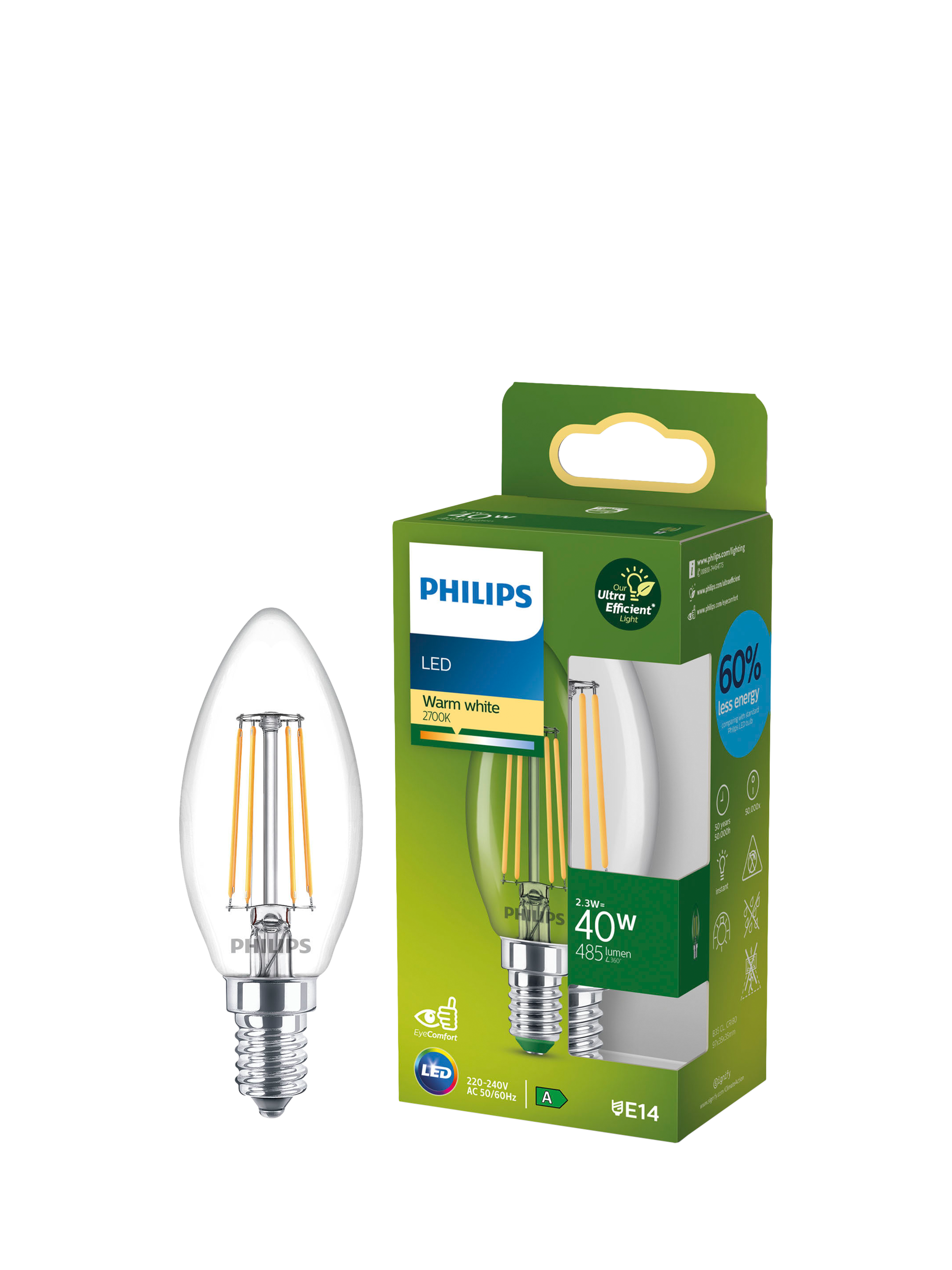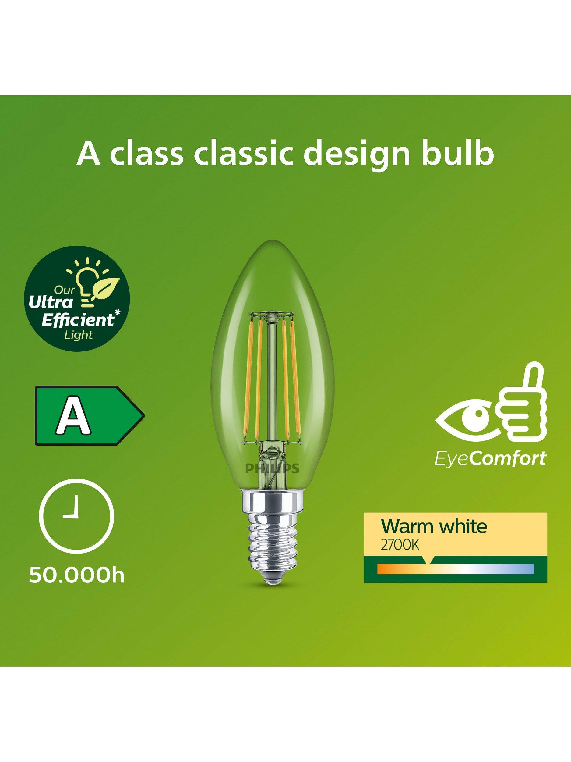 Part of Philip's Ultra Efficient range of LED bulbs, this elegant bulb is a great replacement for your old incandescent bulbs. It uses 60% less energy when compared with a standard Philips LED bulb and provides a beautiful, warm white light, with an exceptionally long life and immediate, significant energy savings.