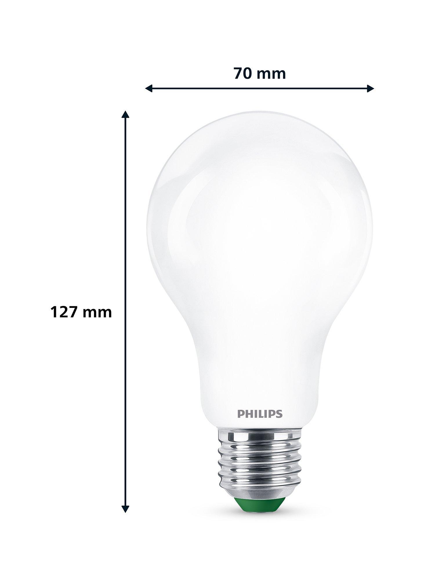 Part of Philip's Ultra Efficient range of LED bulbs, this powerful bulb is a brilliant replacement for your old incandescent bulbs. It uses 60% less energy when compared with a standard Philips LED bulb and provides a beautiful, cool white light, with an exceptionally long life and immediate, significant energy savings. Made with a frosted finish.