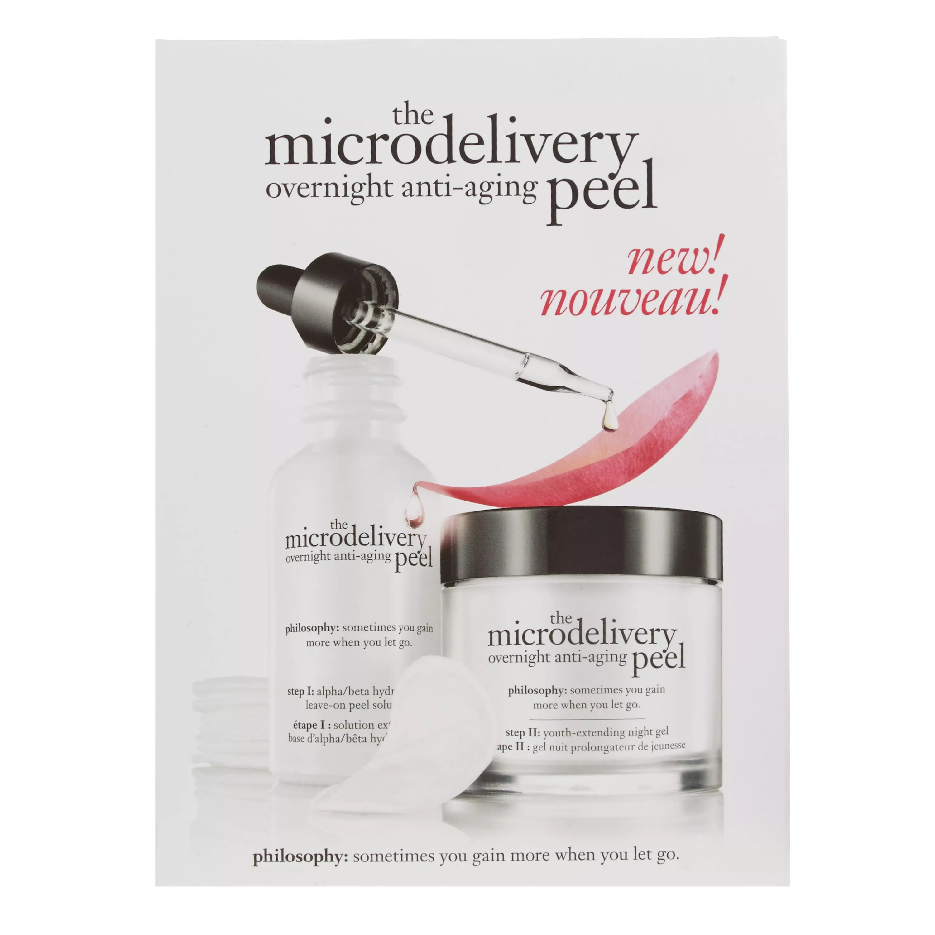 As the peel experts, Philospohy not only discovered a way to gently reveal radiant skin, but also increase skin's resistance to signs of aging and extend its healthy look. Philosophy's first two-step anti-aging peel combines the immediate micro-exfoliation of a peel with the restorative benefits of an overnight sleep mask to virtually eliminate the potential for irritation, for skin that appears healthier-looking longer.