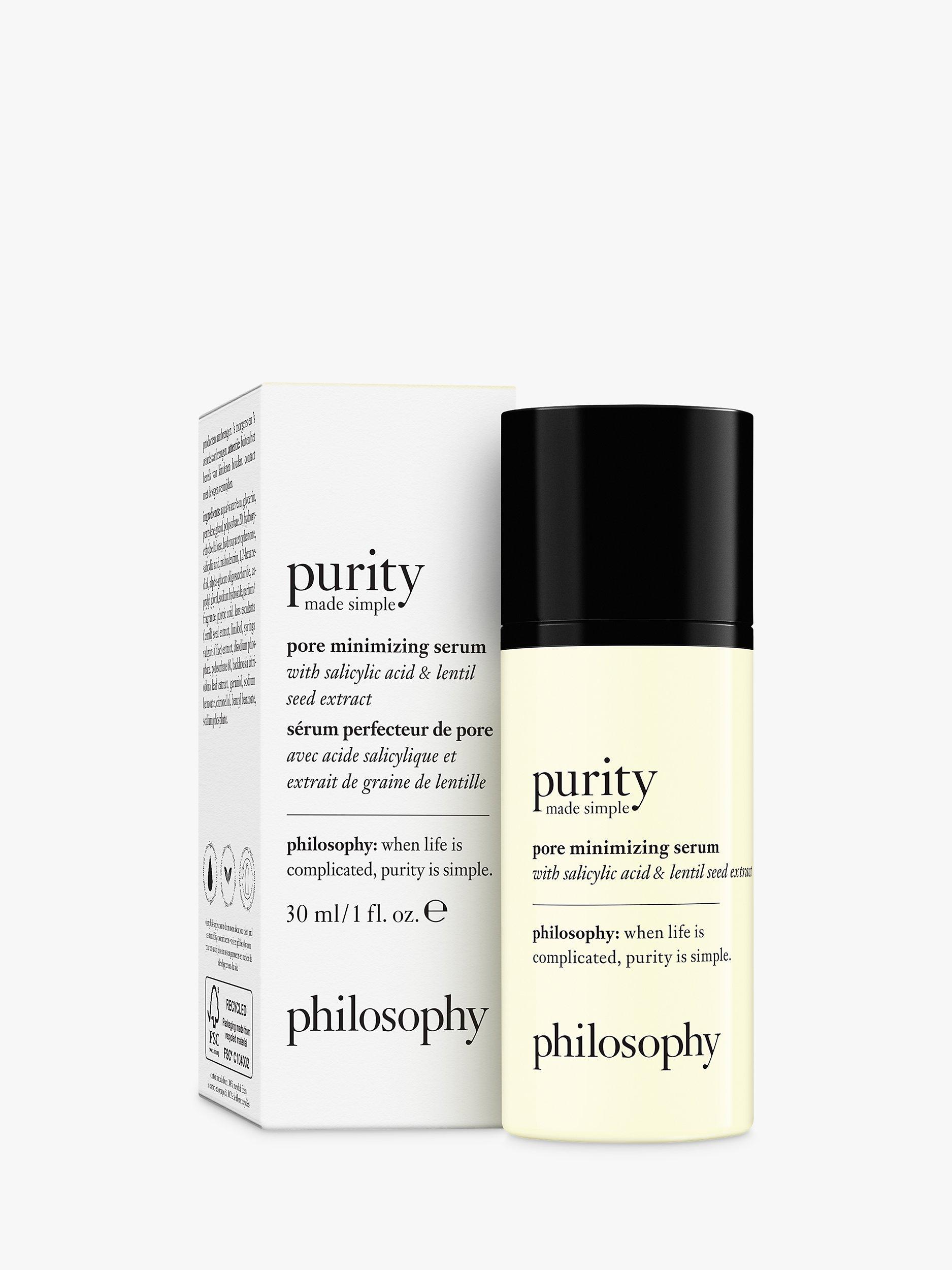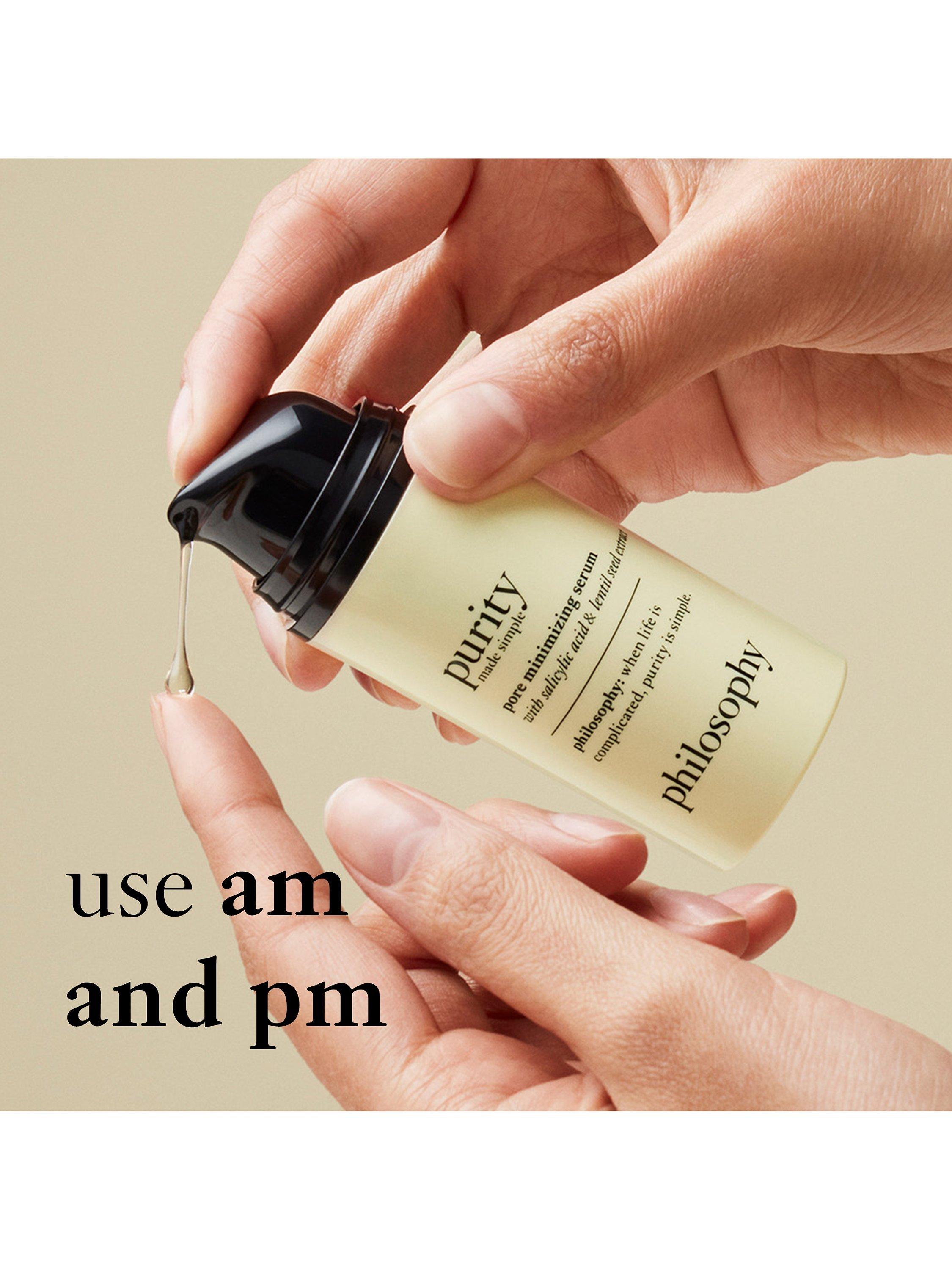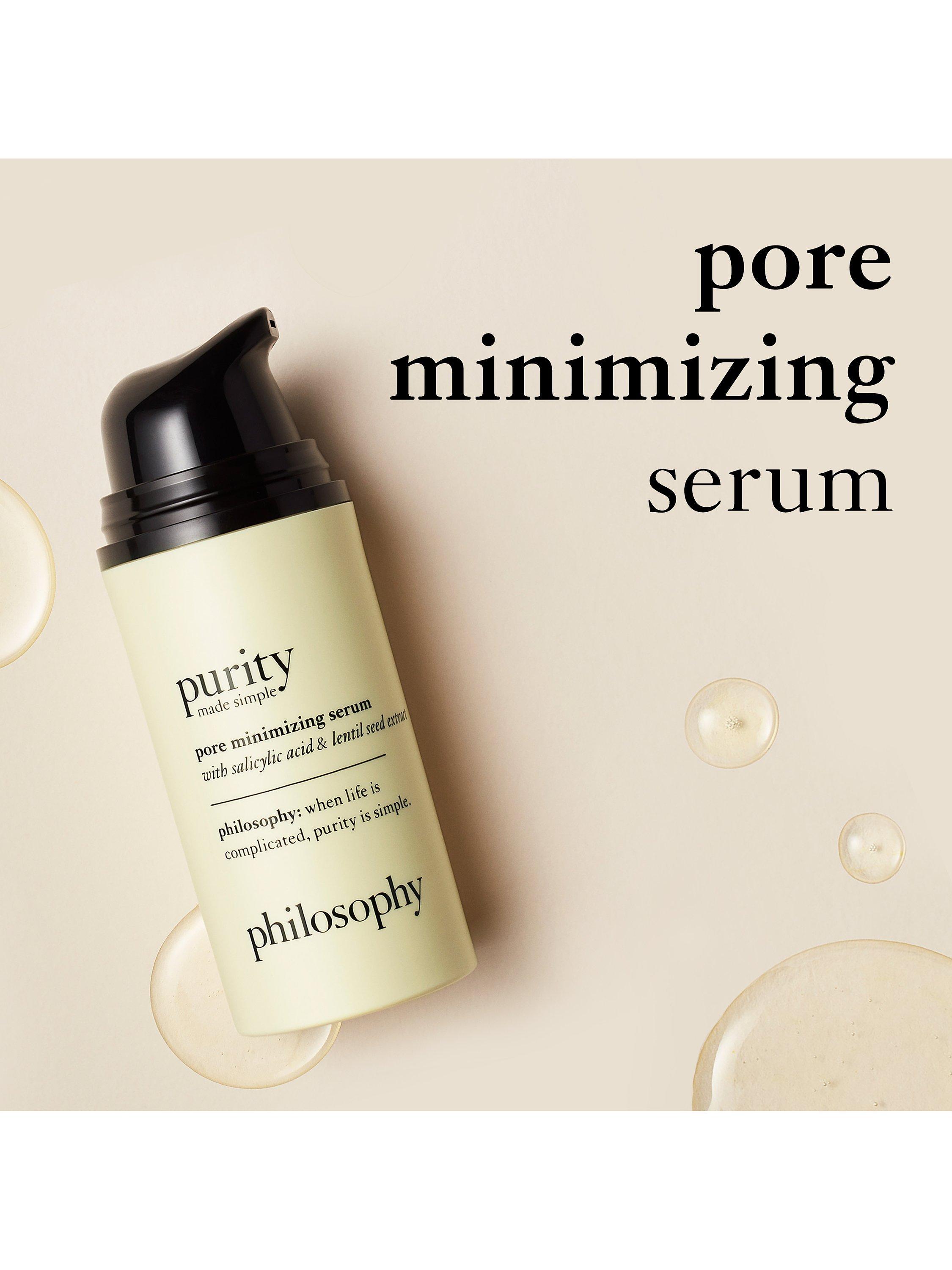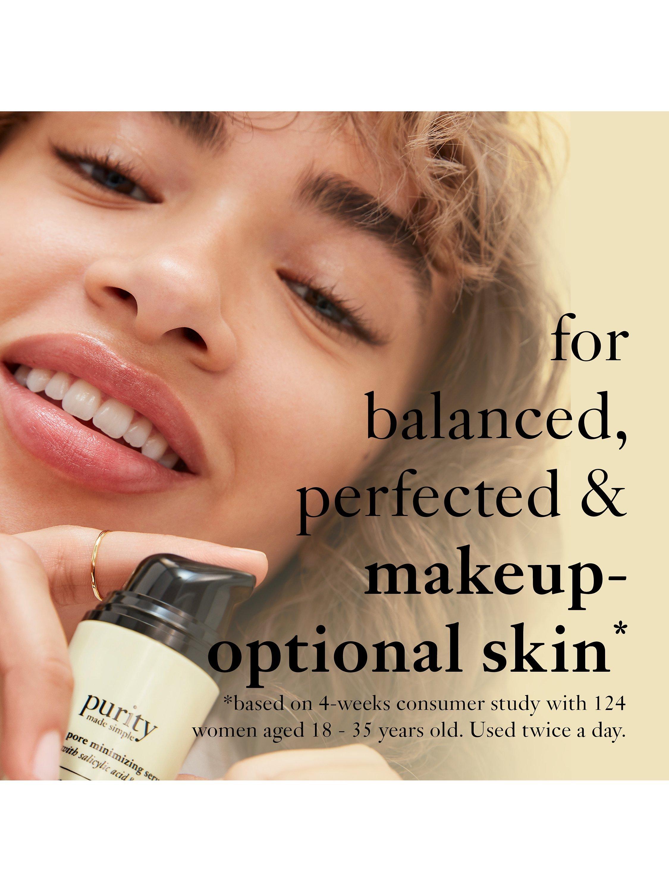 Pore problems? Philosophy has you covered with our new Purity Made Simple Pore-Minimising Serum, clinically proven to minimise pore appearance by 29%. This pore-fecting powerhouse is designed to decrease the appearance of pores instantly and over time, for skin that looks balanced, perfected and makeup-optional.
