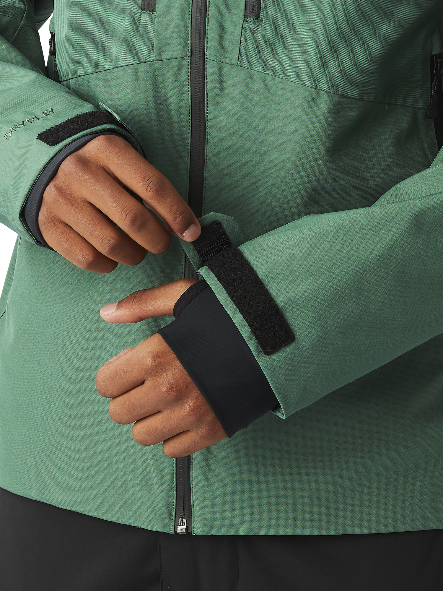 The Goods two-layer jacket will follow you to ski resorts around the world. This ski jacket, with its textured fabric and vibrant colours, is a true timeless piece. It features a 20K/20K membrane for unparalleled breathability and waterproofing, reinforced by a PFC-free durable water repellent treatment and waterproof zippers. Designed primarily for versatility, Picture have included essential technical features, starting with reinforced high-friction areas for durability. This jacket also has zippered vents for easy temperature control during the most intense moments, while the quilted synthetic down lining provides extra warmth. Finally, for improved protection and fit, the hood and cuffs are adjustable. This insulated jacket is equipped with everything you need for an exceptional day on the mountain, even on the coldest days on the slopes.