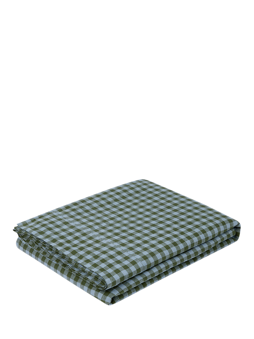 Piglet in BedColour Drenched Gingham Linen Blend Flat Sheet, Fern Green/Dusk Blue