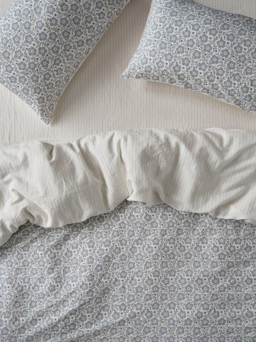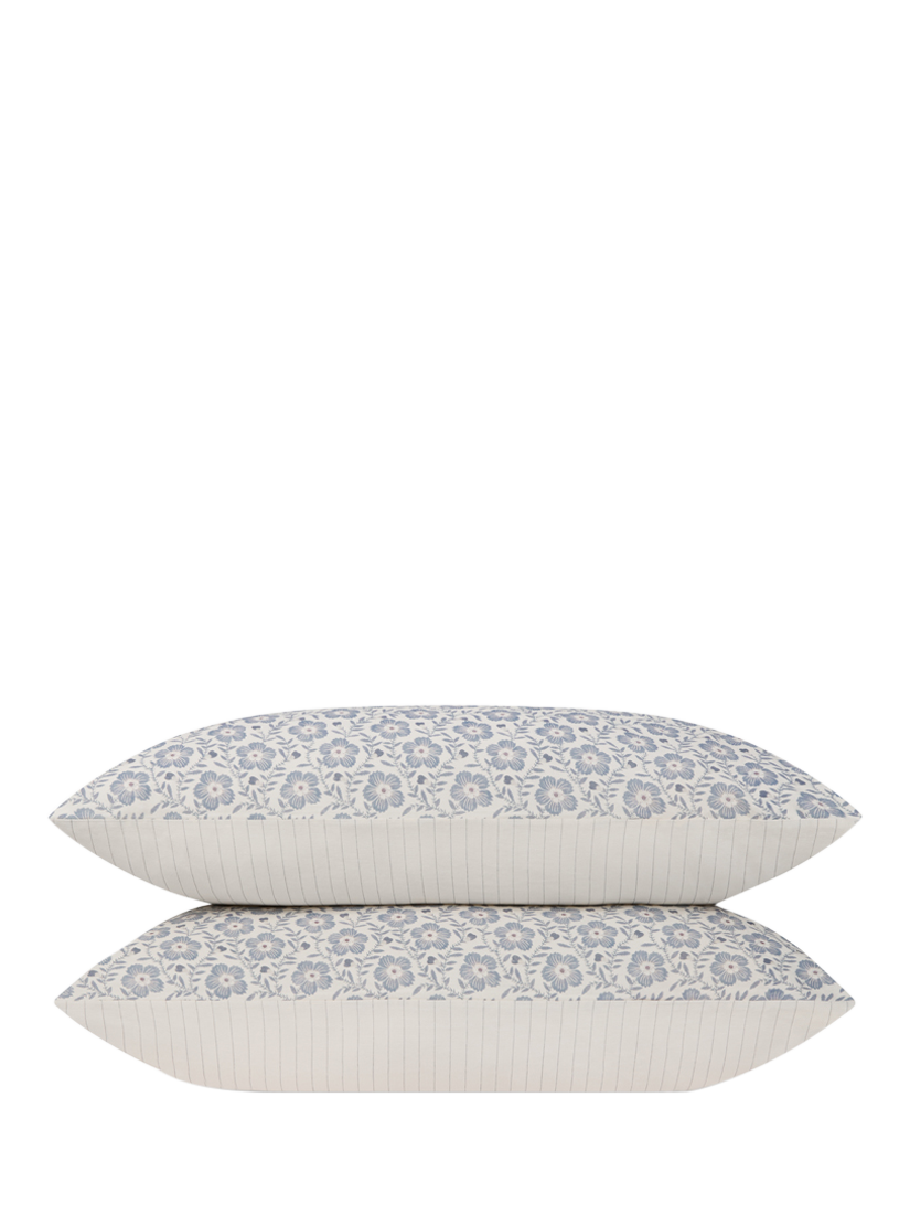 Inspired by wild meadows and traditional craft, these Dusk Blue Folk Floral pillowcases bloom with elegant cornflowers, complemented by a subtle yarn-dyed stripe on the reverse. Made from only the highest-quality fibres, this bedding combines the effortless look of linen with the softness of cotton. Like all pillowcases, they have envelope closures, making sure your pillow stays out of sight.