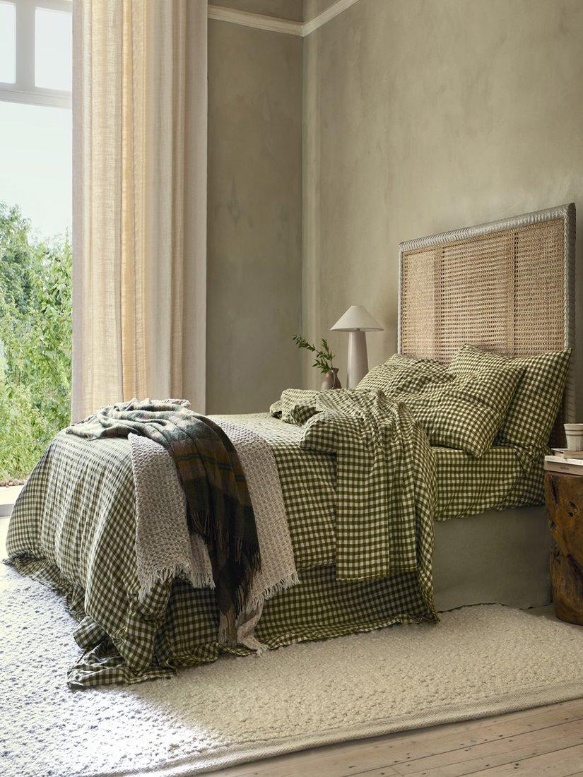 Timeless, yet on-trend, Piglet in Bed's playful gingham linen blend flat sheet is the ultimate choice for modern cottagecore style. Made from only the highest-quality fibres, the breathable fabric combines the effortless look of linen with the softness of cotton. Layer in the colder months or use as a lightweight cover on warmer summer nights.