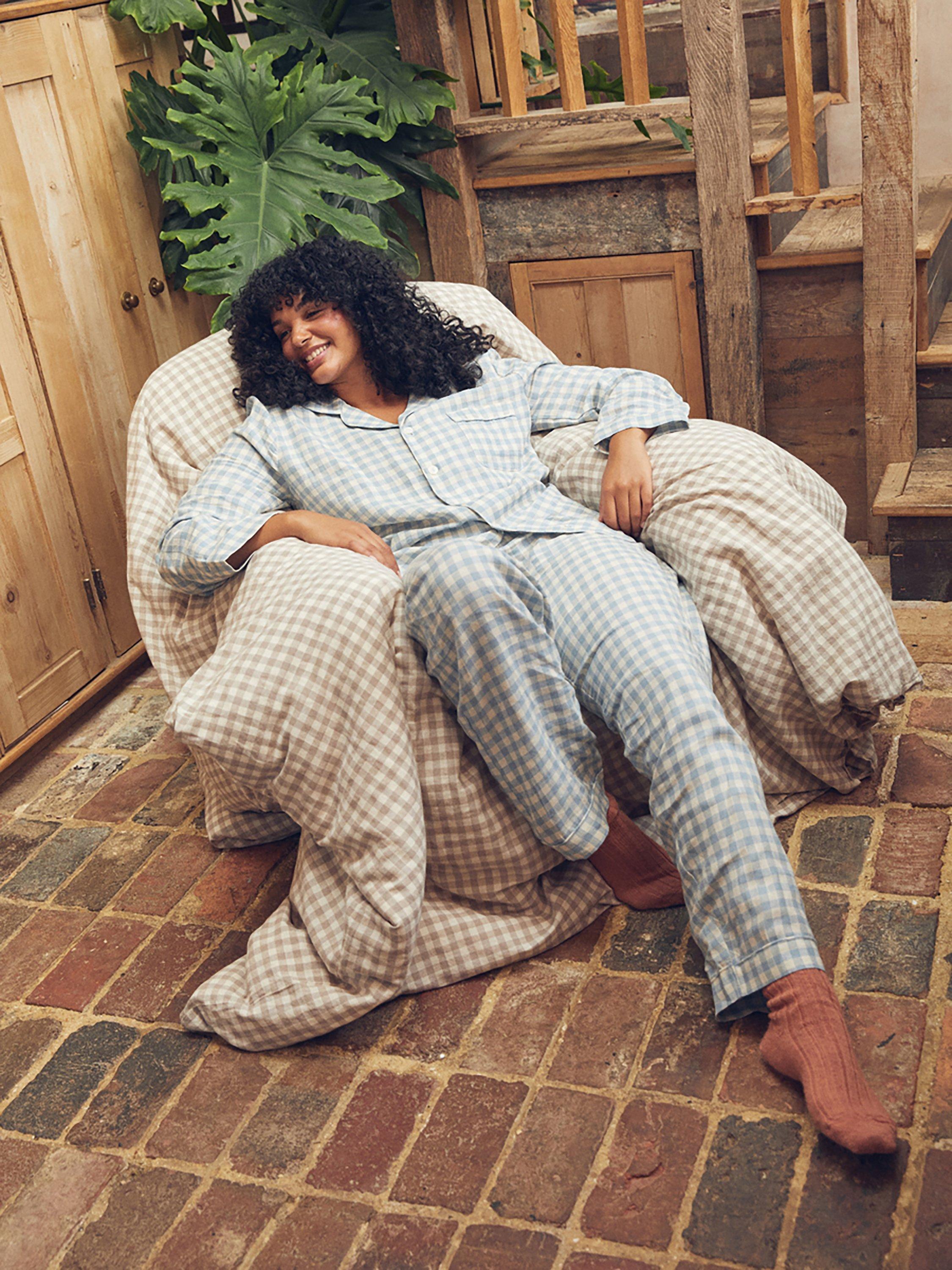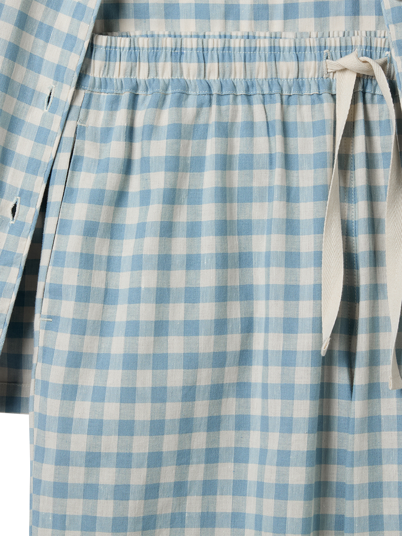 Made for easy, breathable wear, Piglet in Bed's gingham linen blend pyjama trouser set will have you waking up feeling refreshed and ready to seize the day. Combining the laid-back look of linen with the gentle softness of cotton in our beloved gingham pattern, these pyjamas are destined to become your new nighttime favourite.