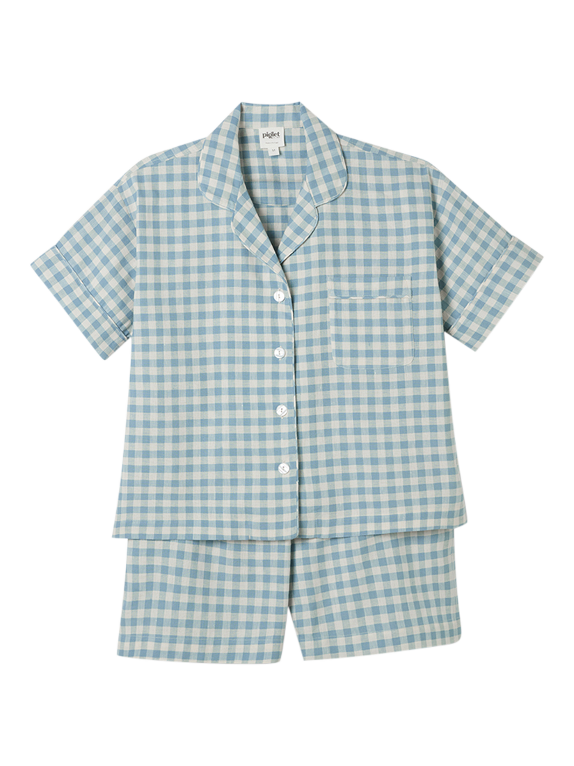 Made for easy, breathable wear, Piglet in Bed's gingham linen blend pyjama short set will have you waking up feeling refreshed and ready to seize the day. Combining the laid-back look of linen with the gentle softness of cotton in our beloved gingham pattern, these pyjamas are destined to become your new nighttime favourite.