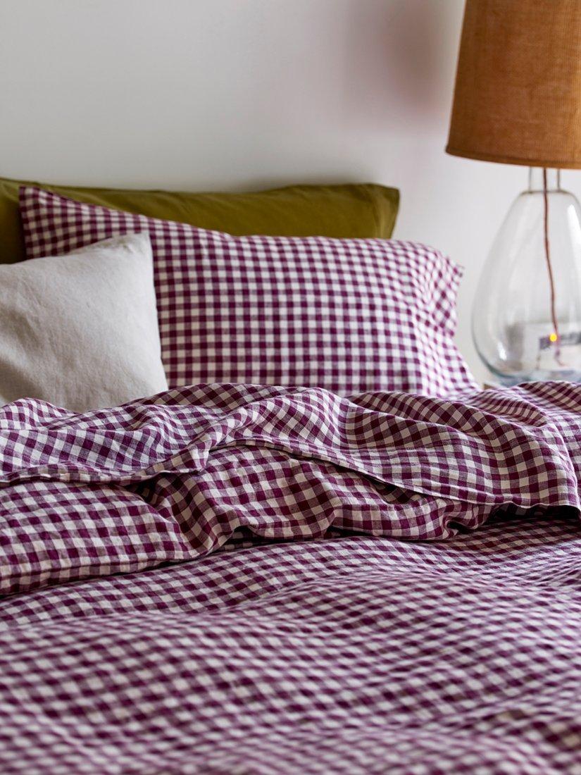 Piglet in BedGingham Linen Flat Sheet, Berry Gingham