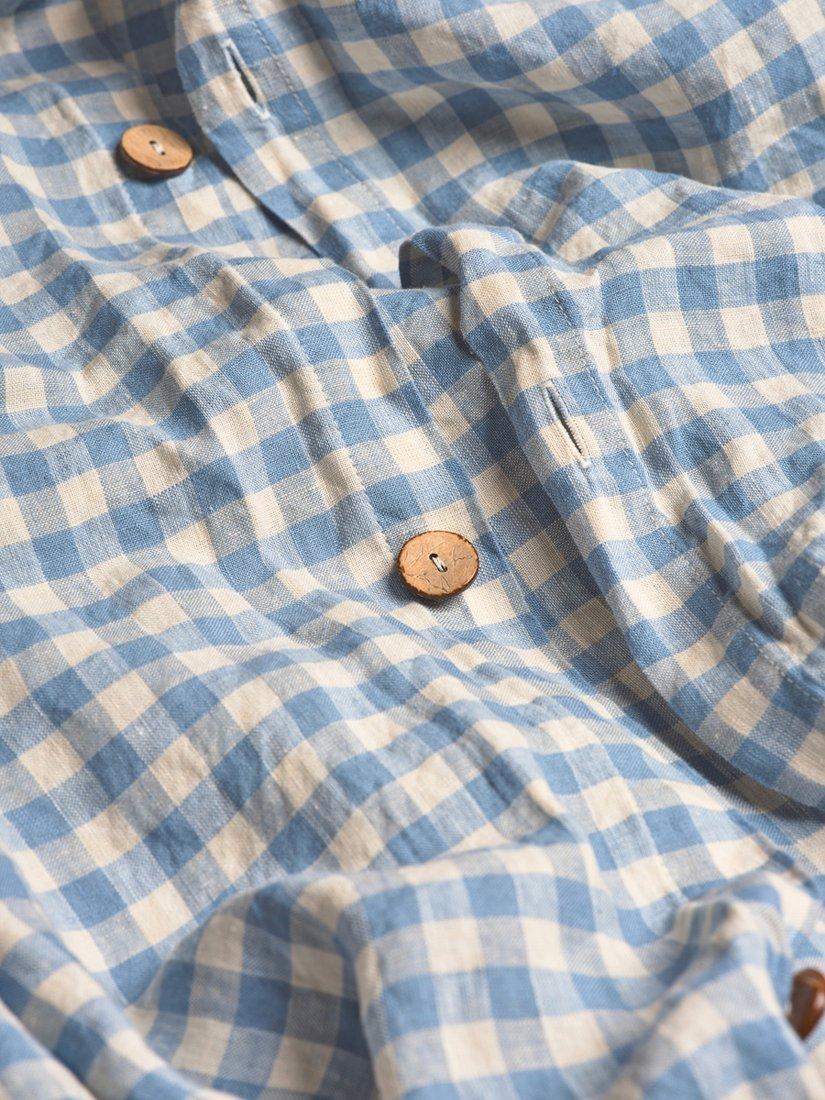 Piglet in BedGingham Linen Flat Sheet, Warm Blue