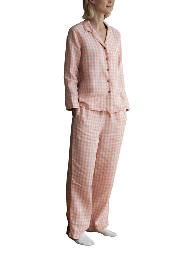 Infusing your night-time collection with timeless gingham, this long-sleeve pyjama set by Piglet in Bed is made from pure linen for a soft feel and breathability and is designed with coordinating bottoms.