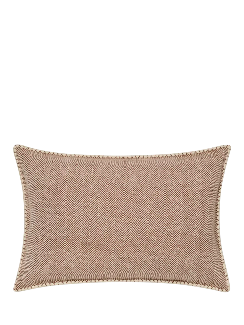 Piglet in BedHerringbone Rectangular Pure Wool Cushion Cover, Mocha/Cream, One Size