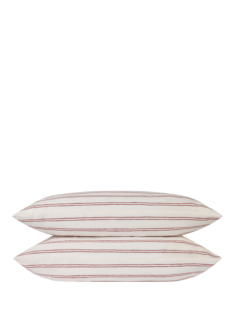 Timeless yarn-dyed stripes in a rich rhubarb hue – these 100% linen pillowcases are a laid-back take on classic style. Made from European flax for a beautiful lived-in look, our linen bedding is lightweight yet durable and only gets softer with wear. All our pillowcases have envelope closures, making sure your pillow stays out of sight.