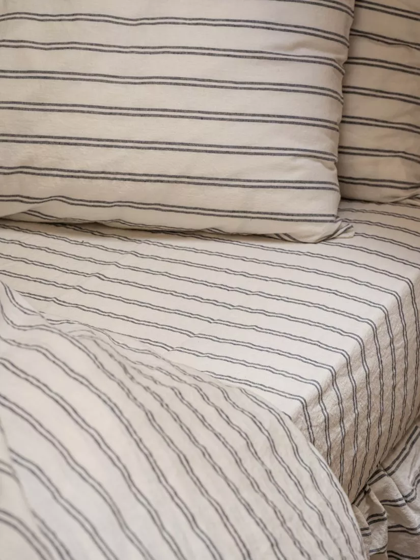 Yarn-dyed Kemptown Stripe linen blend sheeting has a timeless appeal that works in both classic and contemporary spaces. Made from only the highest-quality fibres, the breathable fabric combines the effortless look of linen with the softness of cotton. Layer in the colder months or use as a lightweight cover on warmer summer nights.