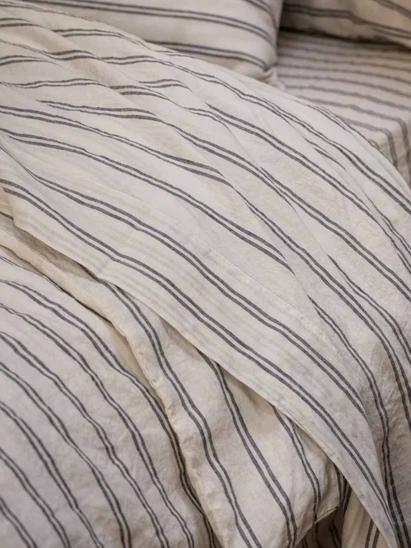 Yarn-dyed Kemptown Stripe linen blend sheeting has a timeless appeal that works in both classic and contemporary spaces. Made from only the highest-quality fibres, the breathable fabric combines the effortless look of linen with the softness of cotton. Layer in the colder months or use as a lightweight cover on warmer summer nights.