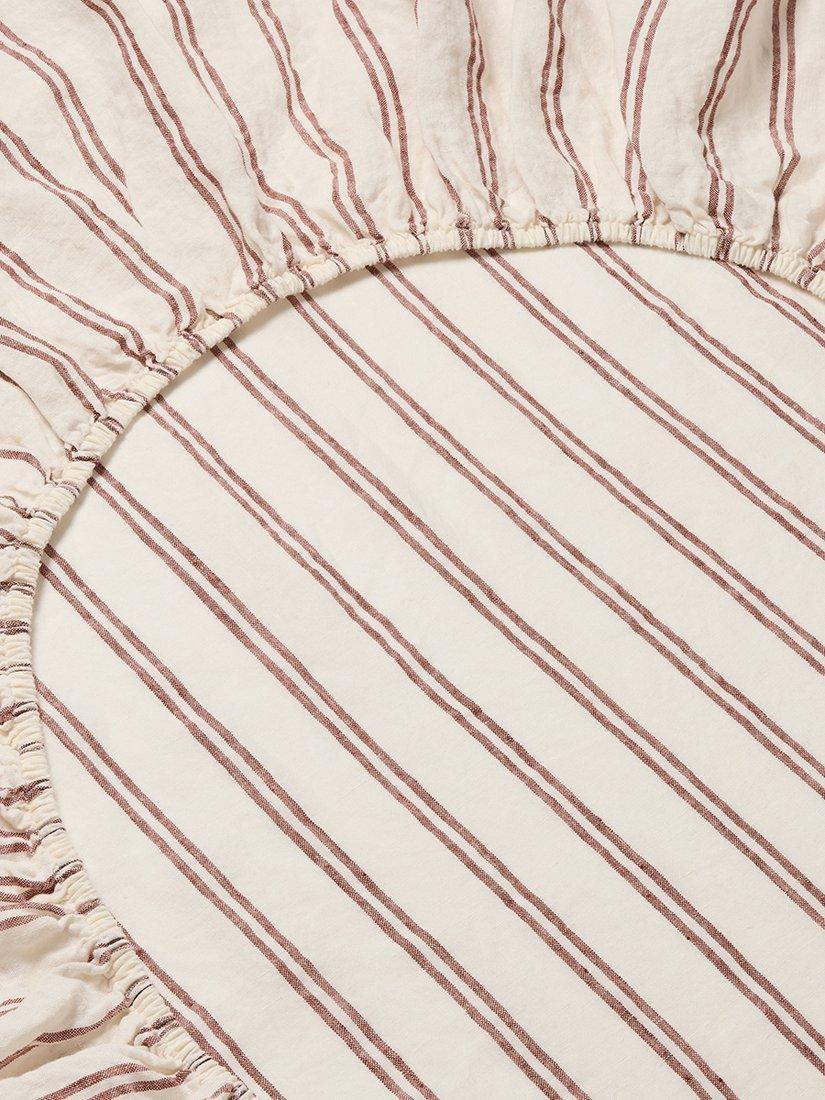 Piglet in Bed yarn-dyed Kemptown Stripe linen fitted sheet have a timeless appeal that works in both classic and contemporary spaces. They have elasticated edges all the way around and fit mattresses up to 40cm deep.