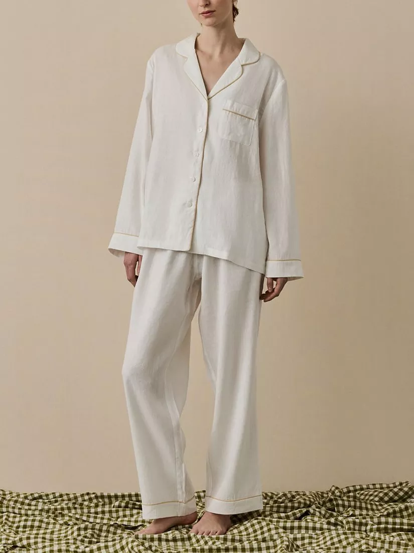 Primed for your next weekend lie-in, this long-sleeve pyjama set by Piglet in Bed is made from a natural linen blend for a lightweight feel and an even better sleep and is finished with longer length hems.