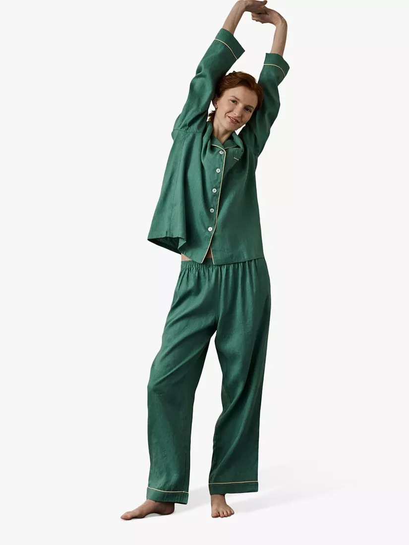 Primed for your next weekend lie-in, this long-sleeve pyjama set by Piglet in Bed is made from a natural linen blend for a lightweight feel and an even better sleep and is finished with longer length hems.
