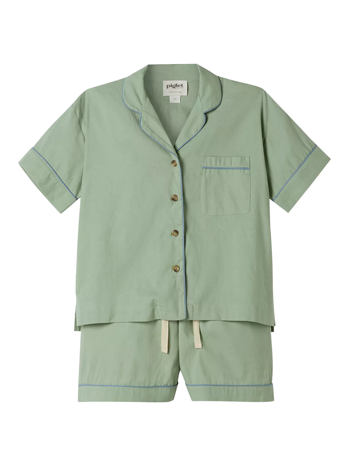 Made for easy, breathable wear, Piglet in Bed's linen blend pyjama short set will have you waking up feeling refreshed and ready to seize the day. Combining the laid-back look of linen with the gentle softness of cotton in our soothing blue hue, these pyjamas are destined to become your new nighttime favourite.
