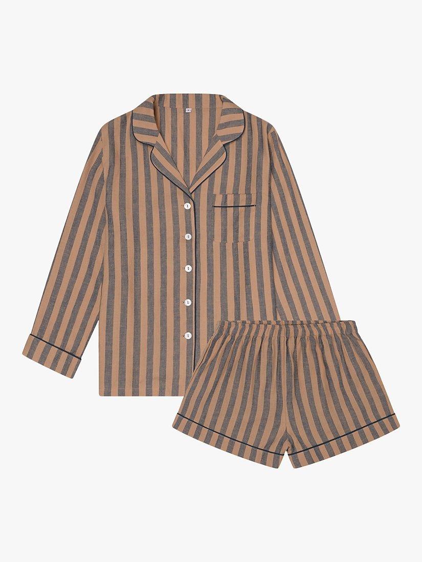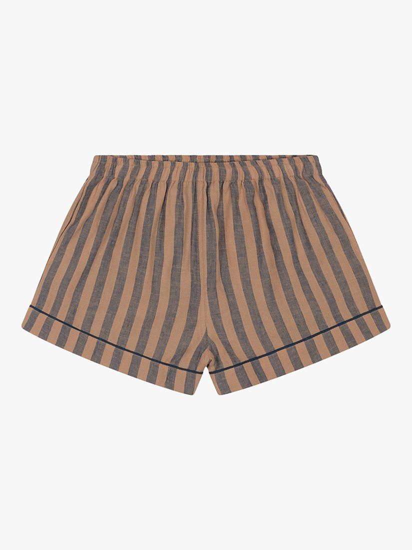 Piglet in BedLinen Blend Striped Pyjama Shorts Set, Blue/Porcini