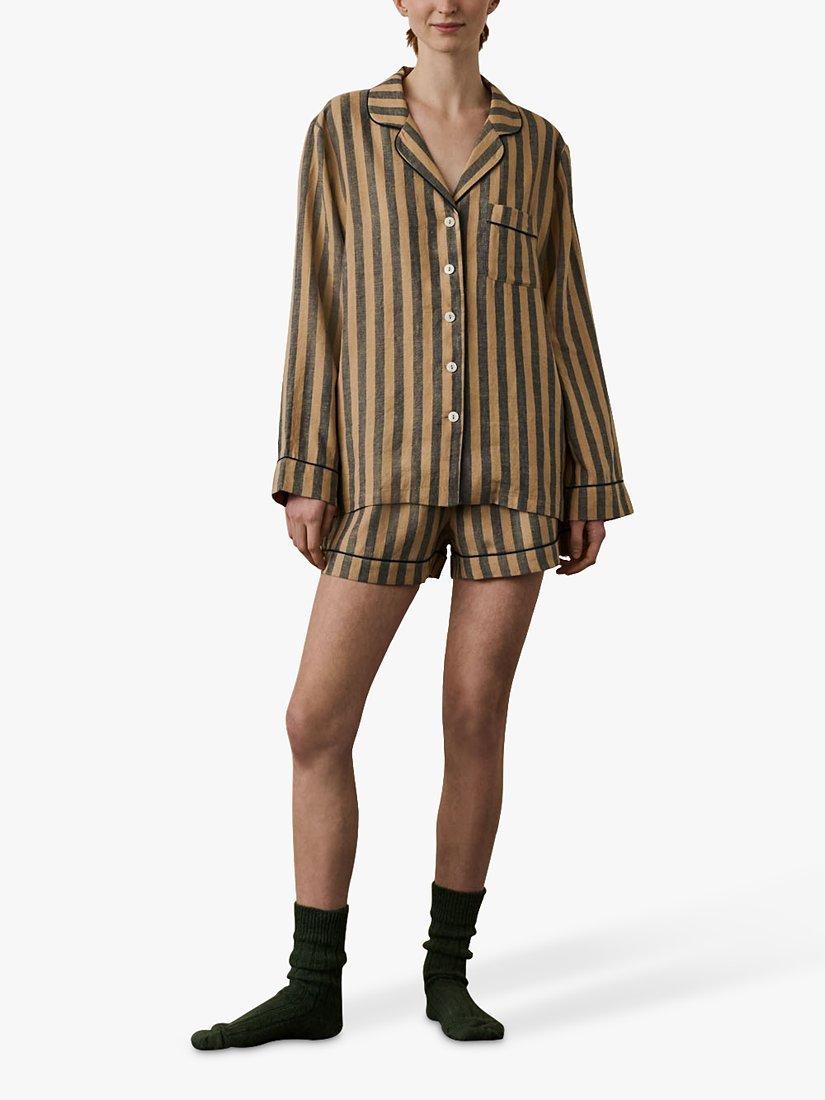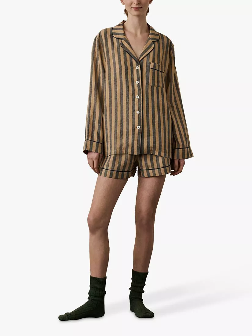 Swathed in stripes for a style that'll only encourage you to hit snooze, this long-sleeve pyjama set from Piglet in Bed is blended with linen for softness and breathability and comes with coordinating shorts.