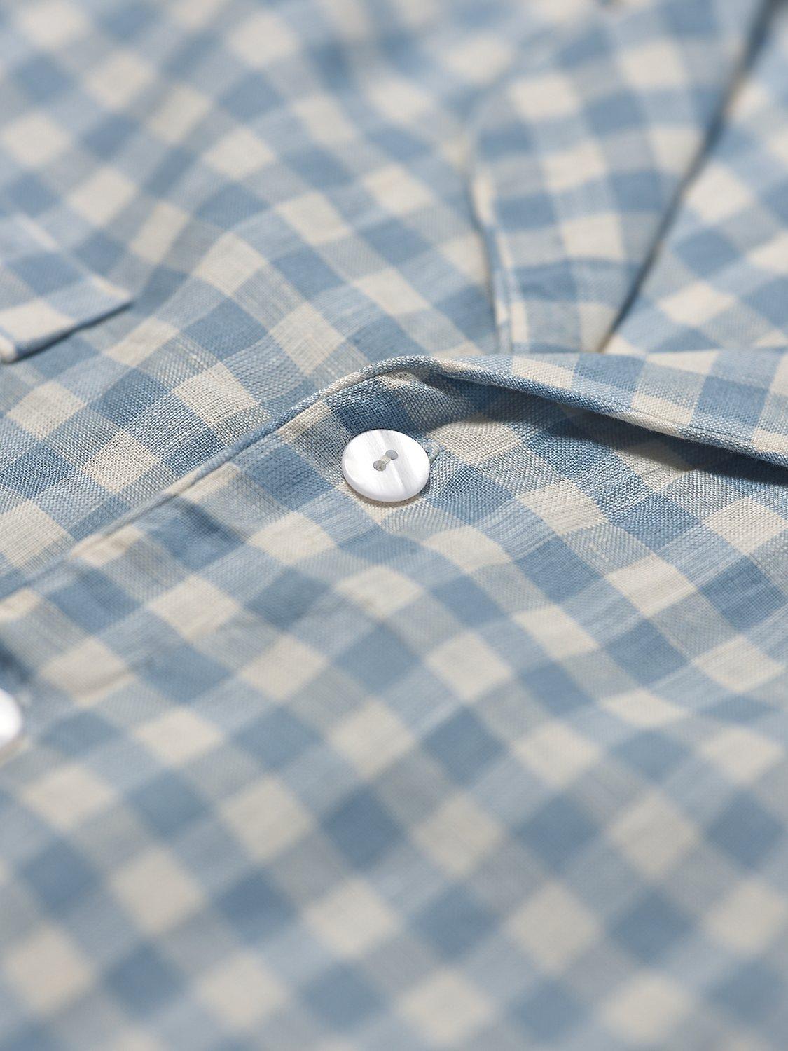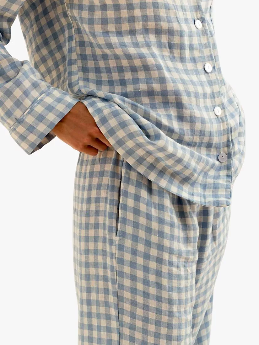 Made for nights in and slow mornings, the Men's Warm Blue Gingham Linen Pyjama Trouser set is made from super soft 100% stonewashed linen. Linen keeps you cosy and warm in the winter and cool in the summer. The shirt and trouser shape is timeless, yet being made from lightweight natural linen makes this pyjama set effortlessly comfortable.