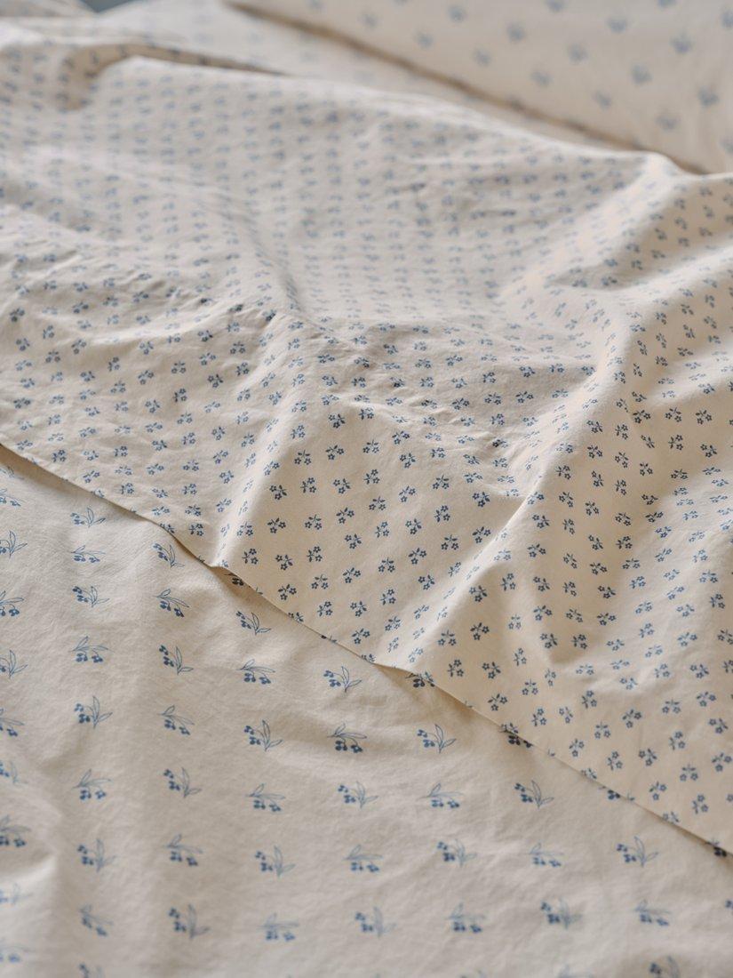 Piglet in BedMartha Washed Cotton Flat Sheet, Cove Blue/Cream