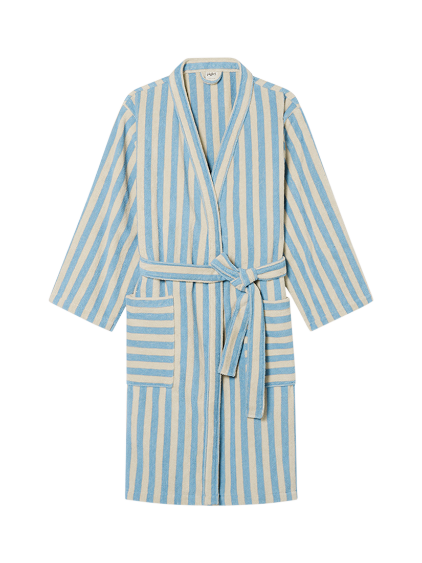 Envelope yourself in plush, natural comfort with the Pembroke Stripe Cotton Robe. Made from zero-twist cotton, this absorbent bath robe is super soft and smooth. Features handy side pockets, an adjustable waist tie, and kimono-inspired sleeves.