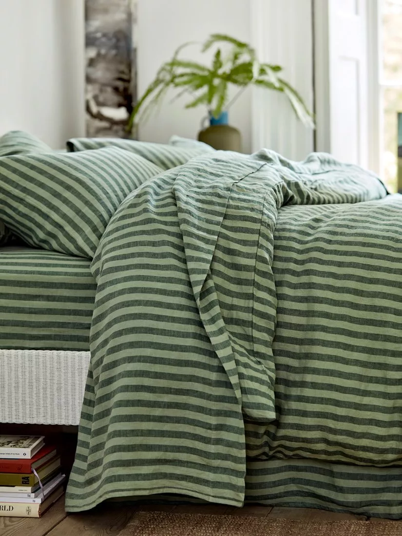 Nestle into nostalgia with these bold deckchair-inspired stripe linen flat sheets.