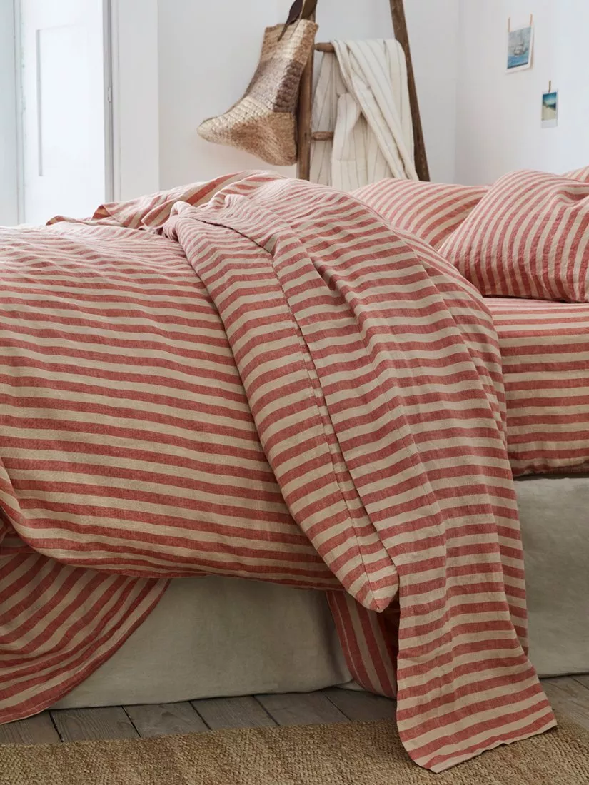 Nestle into nostalgia with these bold deckchair-inspired stripe linen flat sheets.