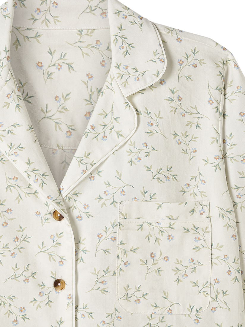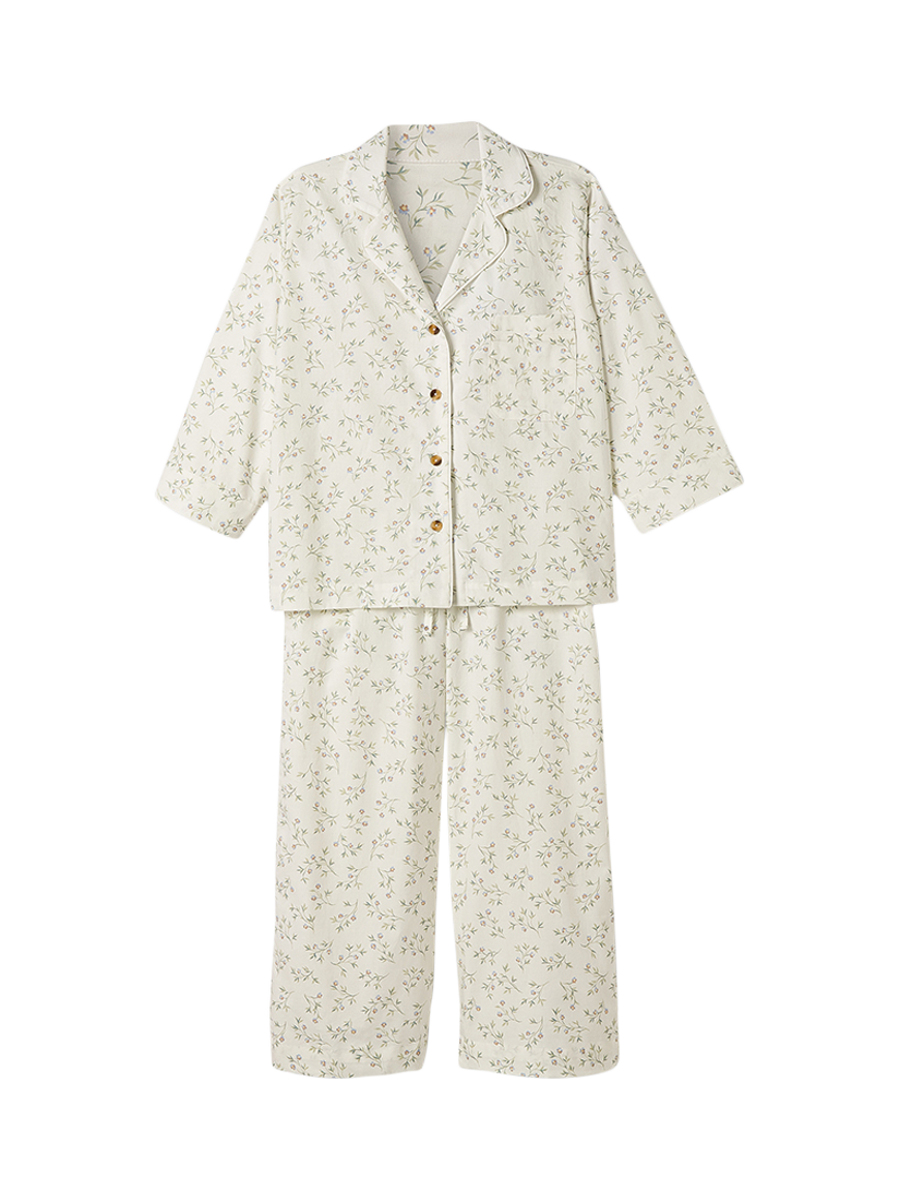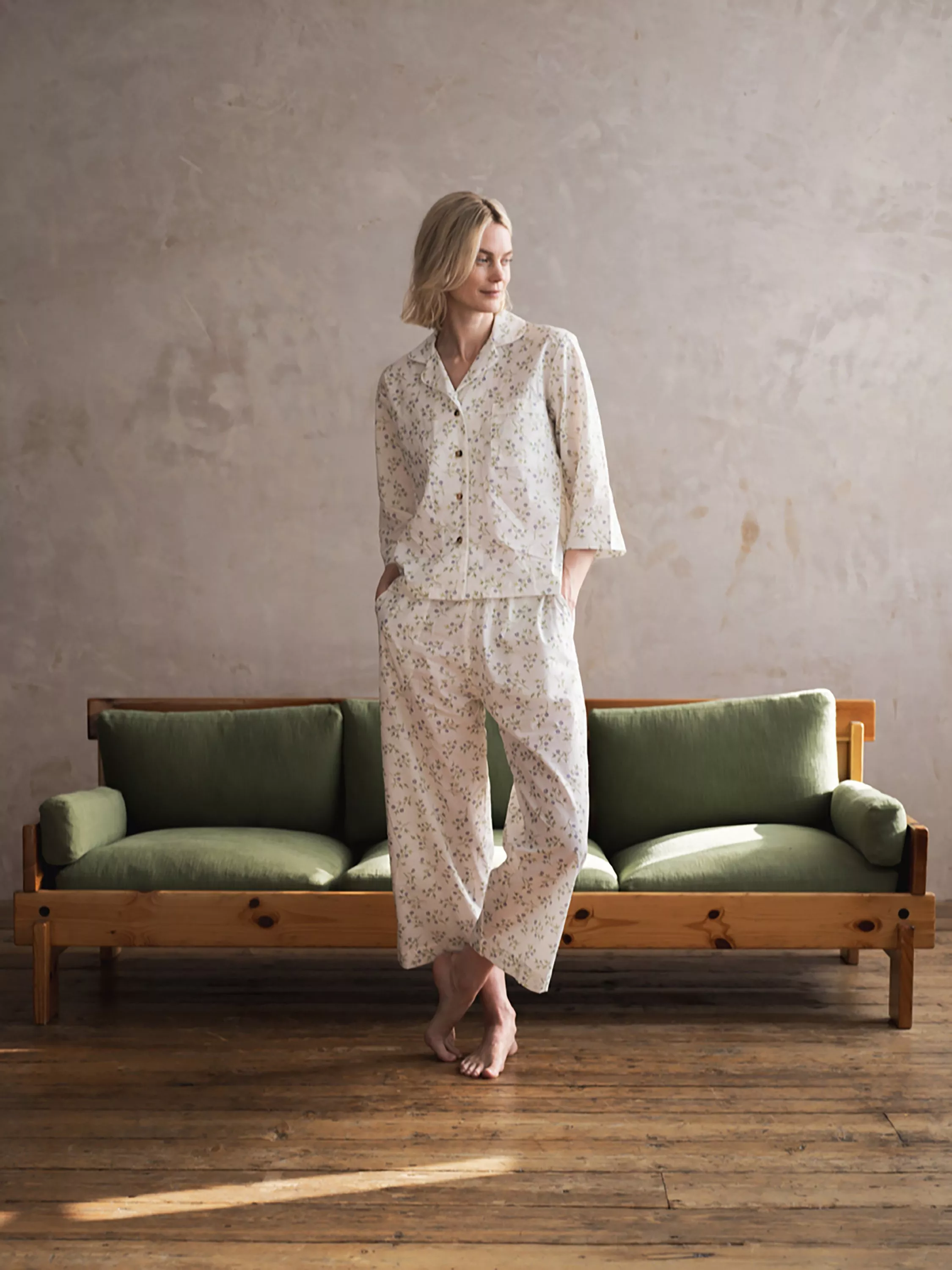 Featuring a ¾ sleeve shirt and cropped trousers, this Spring Sprig cotton pyjama set shows that sophisticated sleepwear isn't just for bedtime. Crafted from 100% prewashed cotton for extra softness and a lived-in feel, this is loungewear you'll want to stay in all day long.