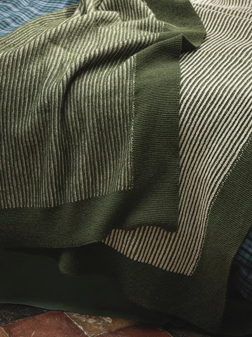 Piglet in Bed Striped Wool Blend Knit Throw, Cedar Green, Large