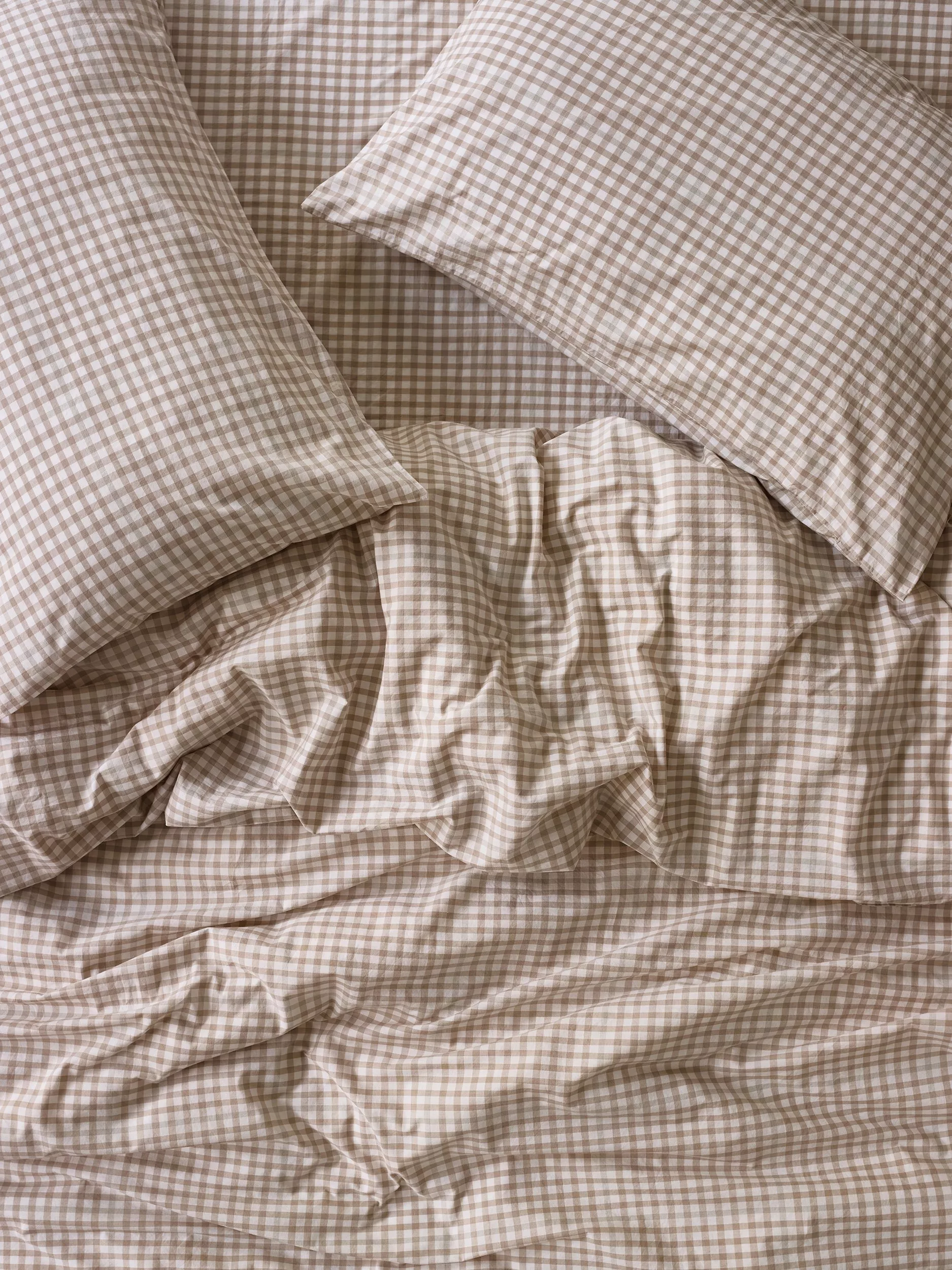 Piglet in BedWashed Cotton Percale Gingham Bedding, Cafe Au Lait