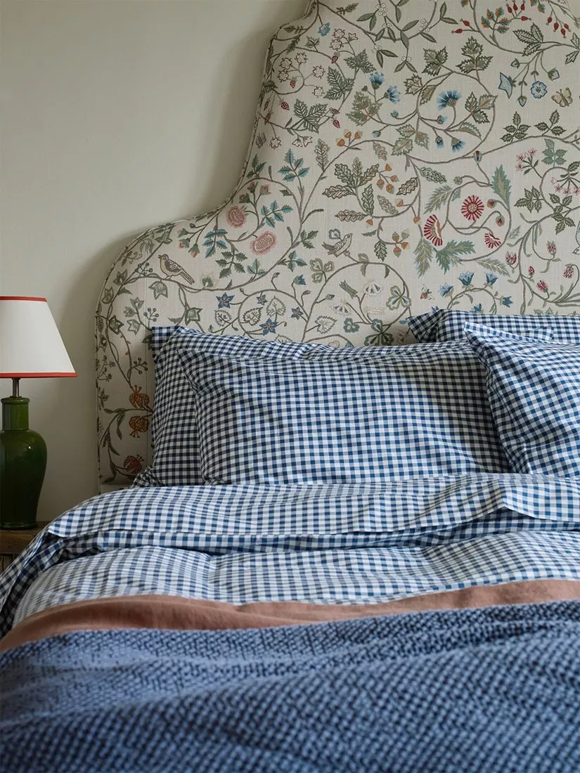 Piglet in BedWashed Cotton Percale Gingham Bedding, Indigo