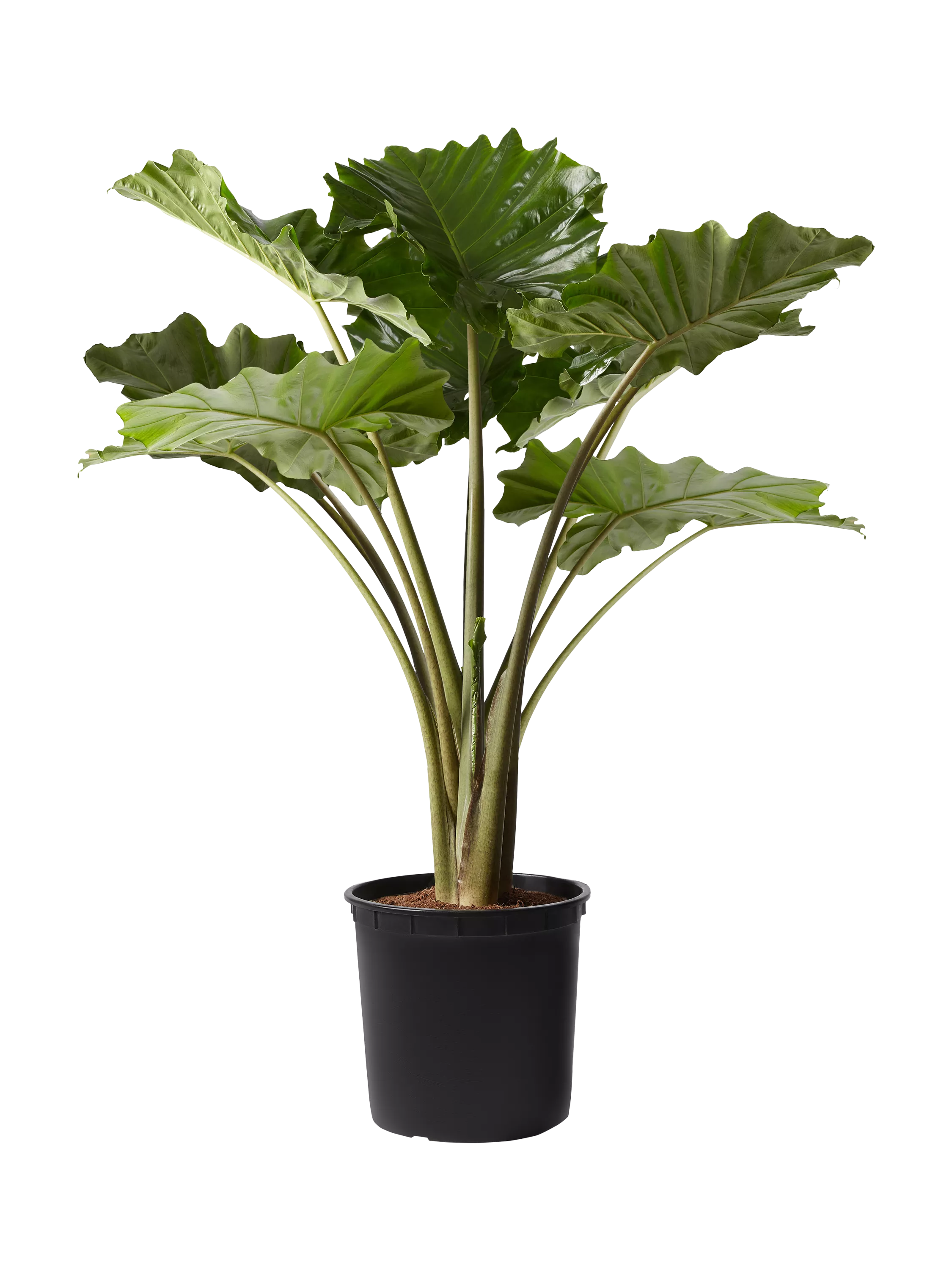 Known as the Elephant Ear for its great leaves reminiscent of the great beast. These rainforest plants like humid conditions but also a good amount of indirect light. Plant height is 130-150cm. Decorative pot not included.