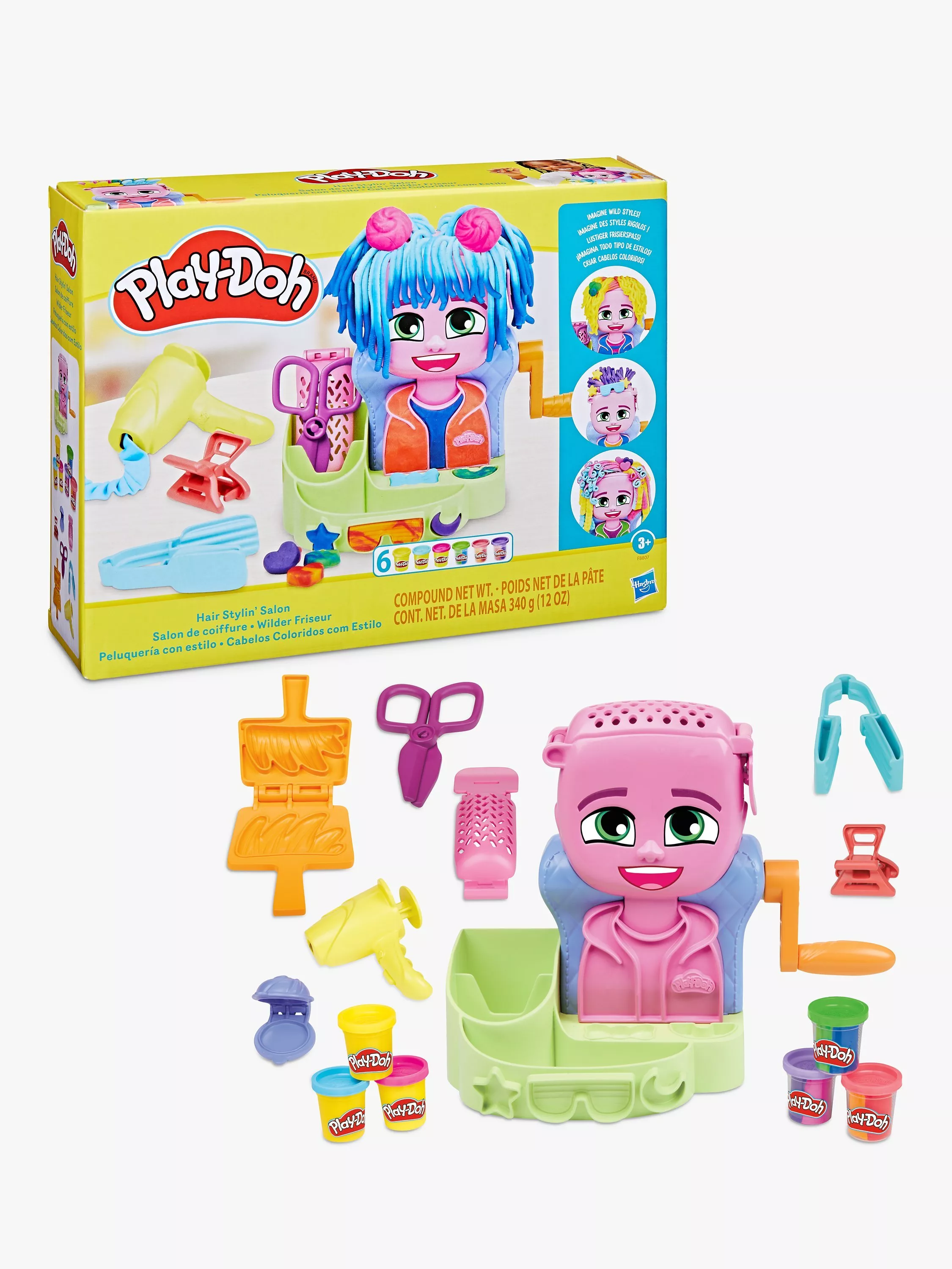 This Play-Doh kit includes a curl-creating hair dryer, mohican mould, crimper and two different plates to make different hair textures. It comes with 340g of Play-Doh, including 3 dual-colour cans. This indoor playset is perfect for imaginative play and suitable for children aged 3 years+.