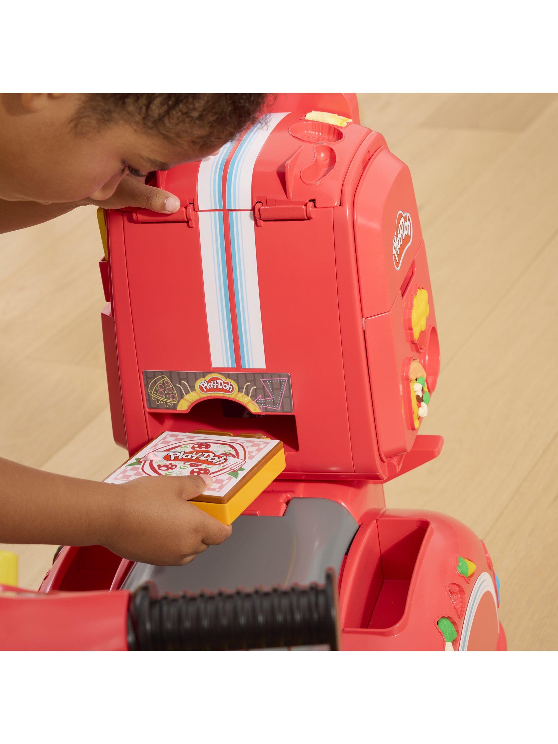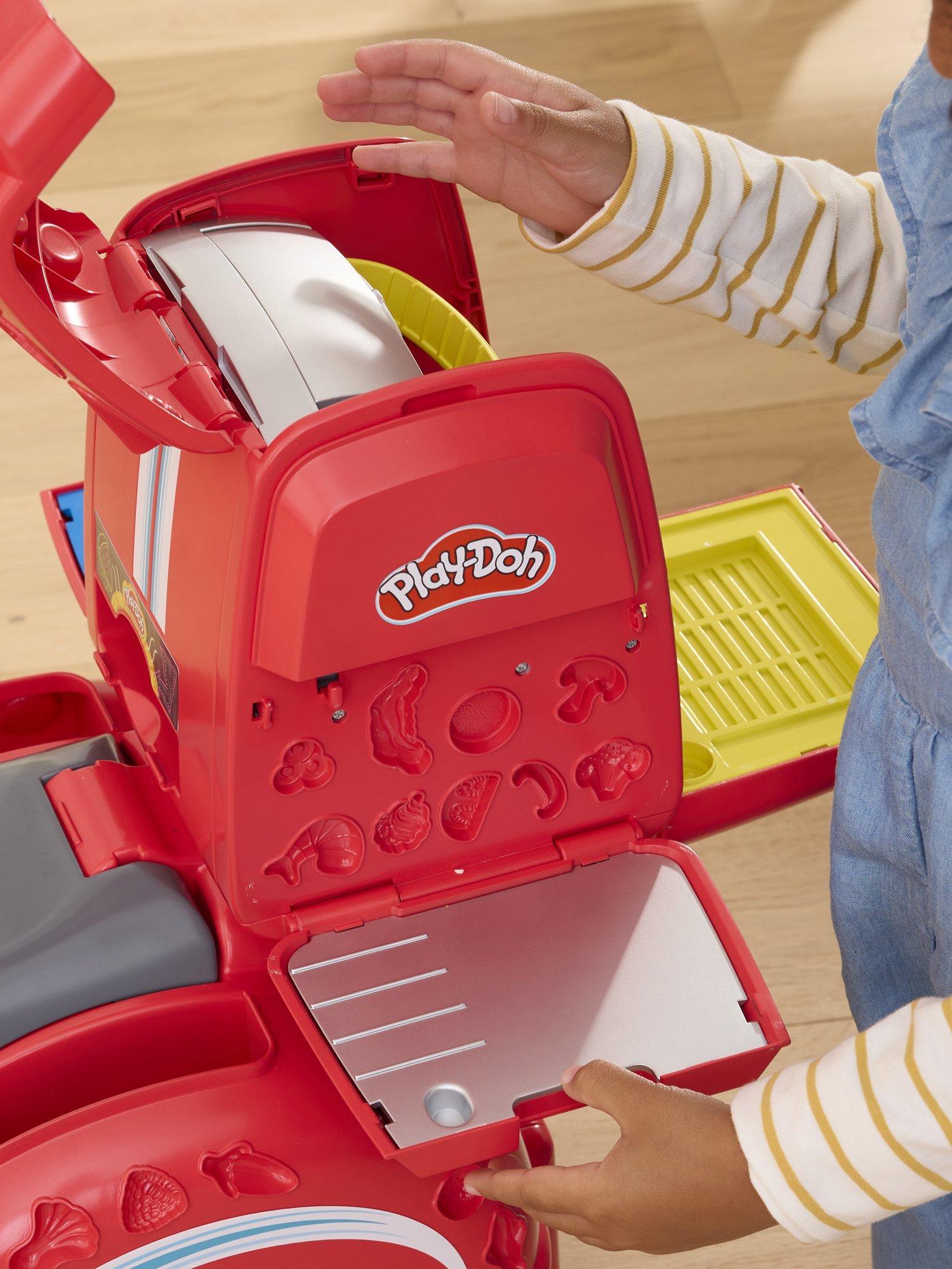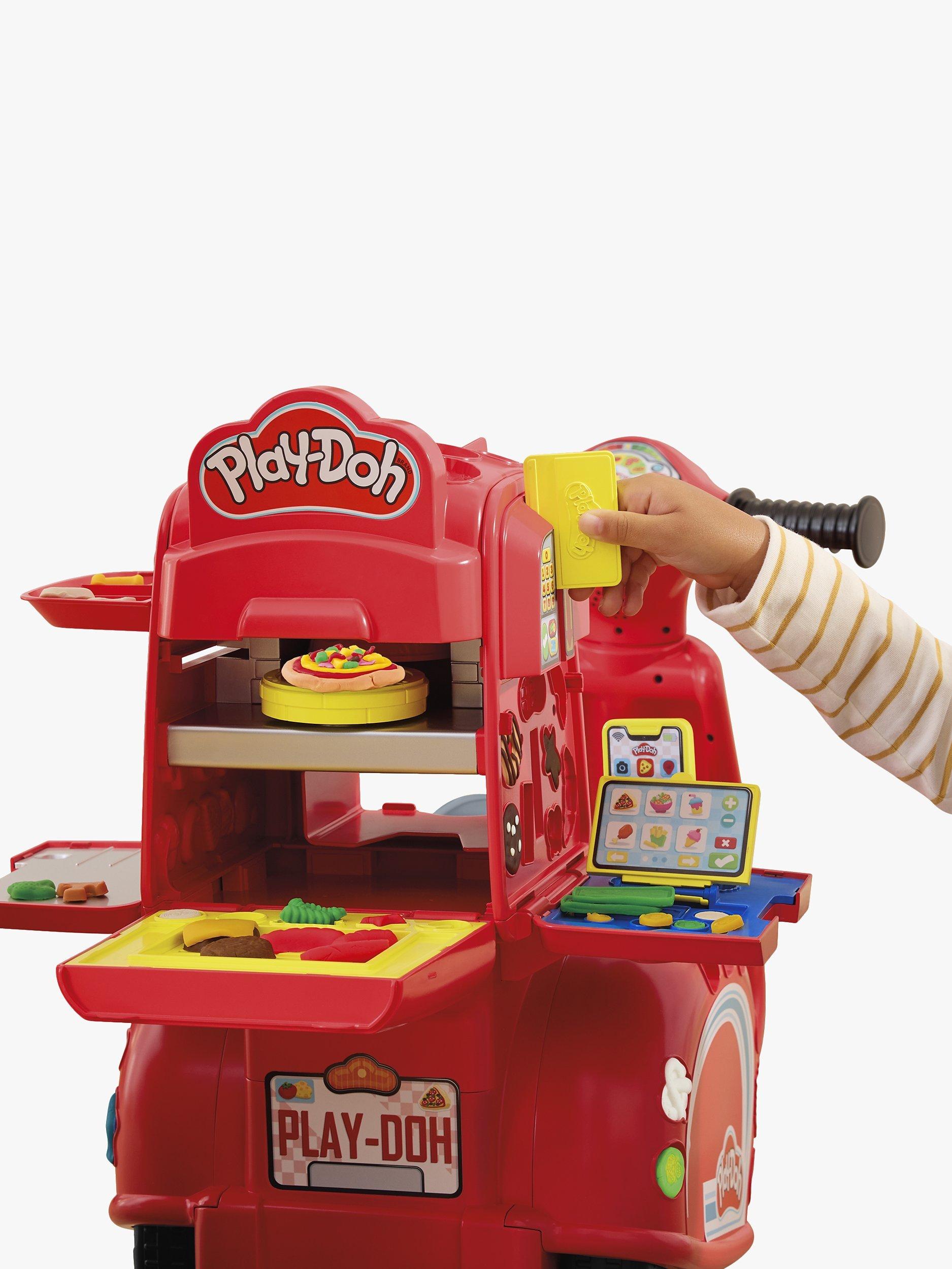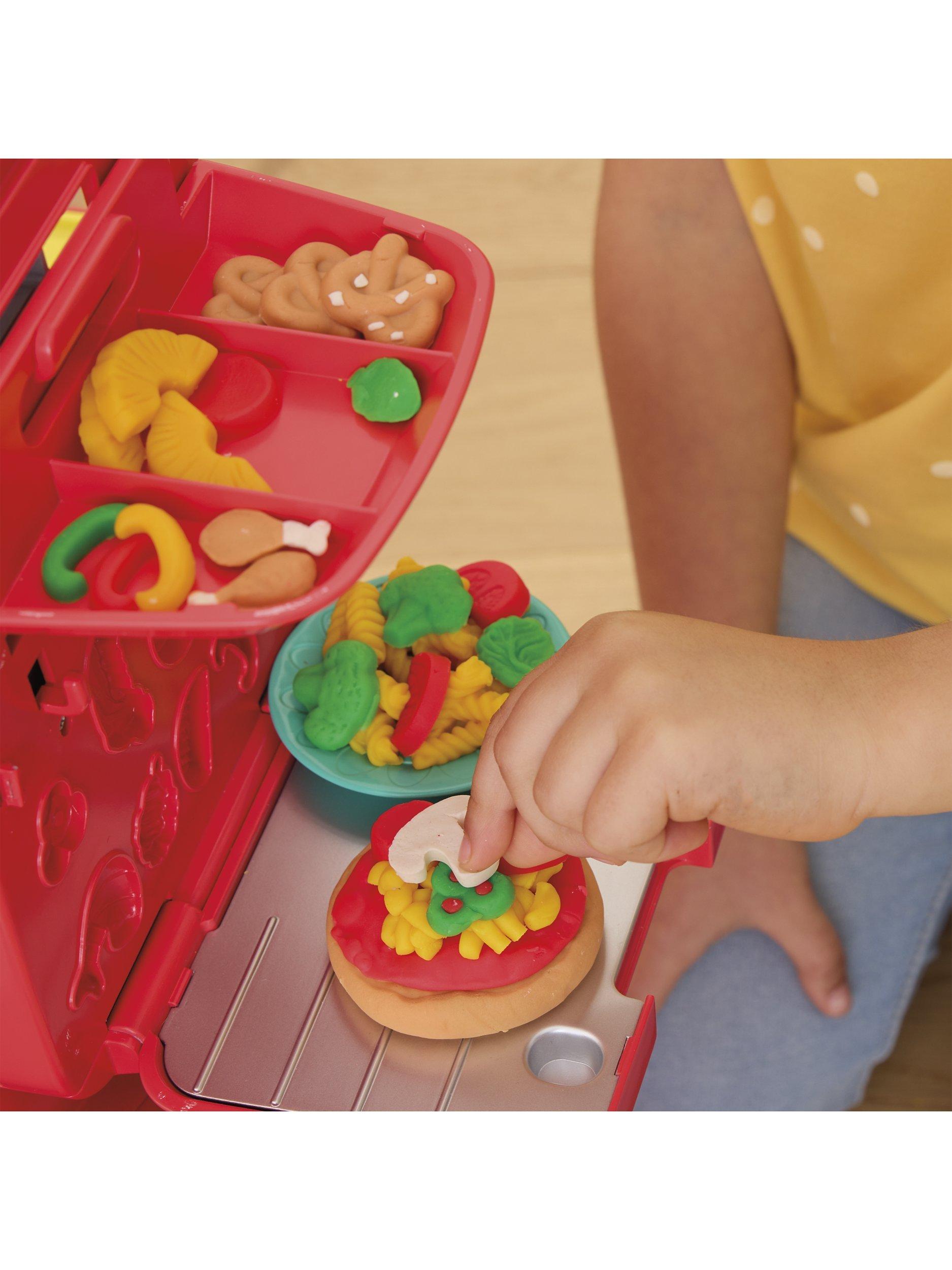 This unique imagination toy inspires even more children's pretend play with 10 modelling compound colours in 56g cans and 16 pretend kitchen accessories to create and share Play-Doh pizzas, pretend ice cream treats and more.